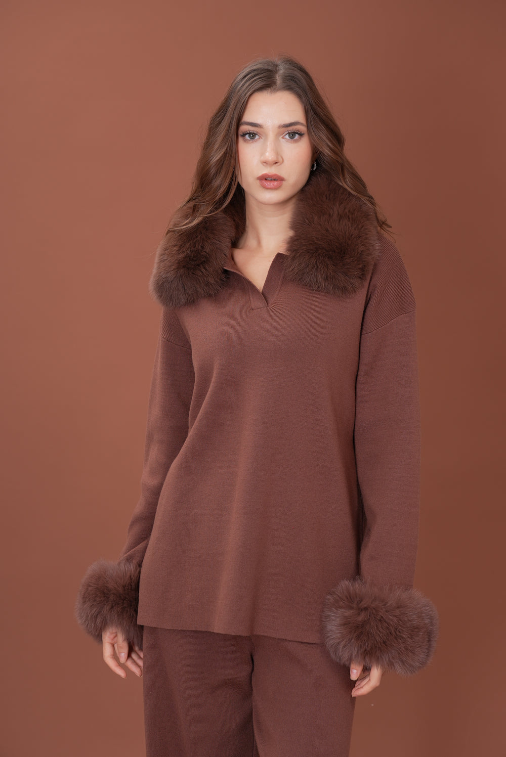 Velora Real Fox Fur Knit Lounge Set - Fur Cuff Edition