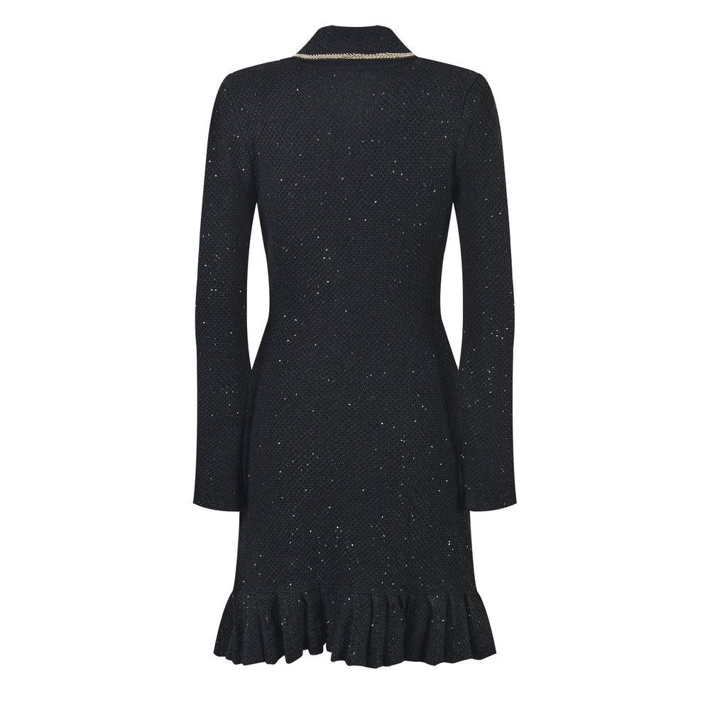 Marina Luxe Wool Knit Sequin Ruffle Mini Dress