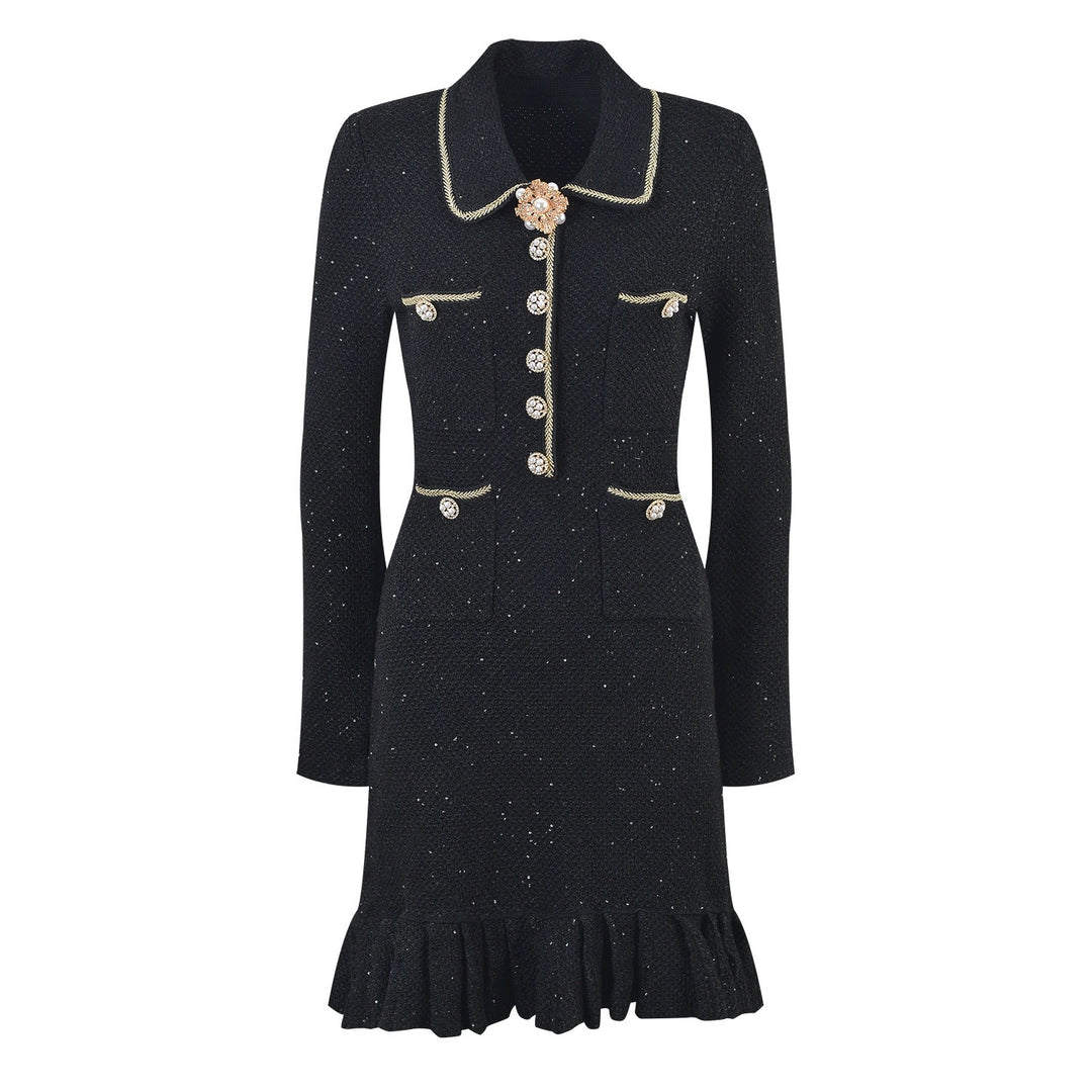 Ruffle Bow Wool Knit Sequin Mini Dress