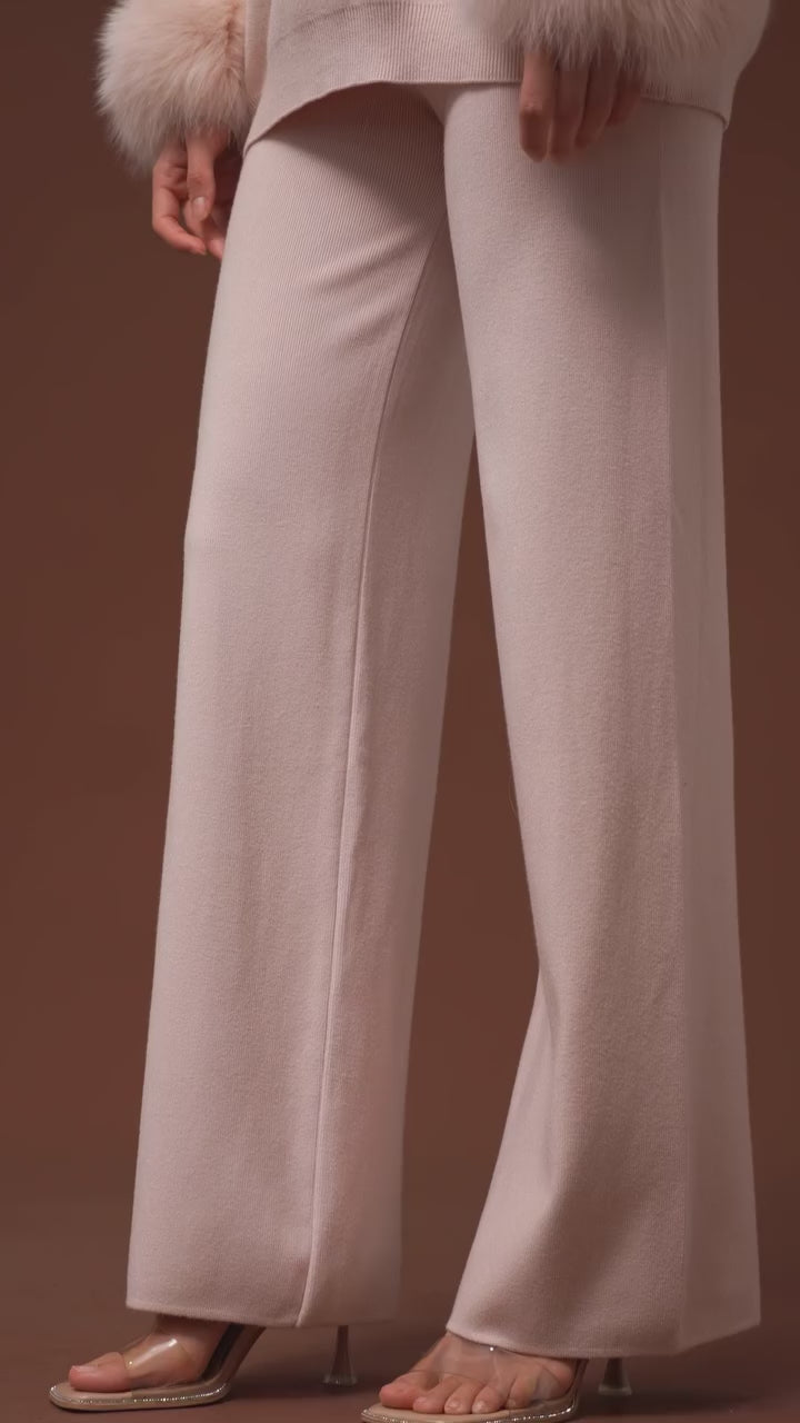 Designed in a soft, high-quality knit, it features a relaxed turtleneck sweater paired with wide-leg pants for a sophisticated yet cozy fit.
