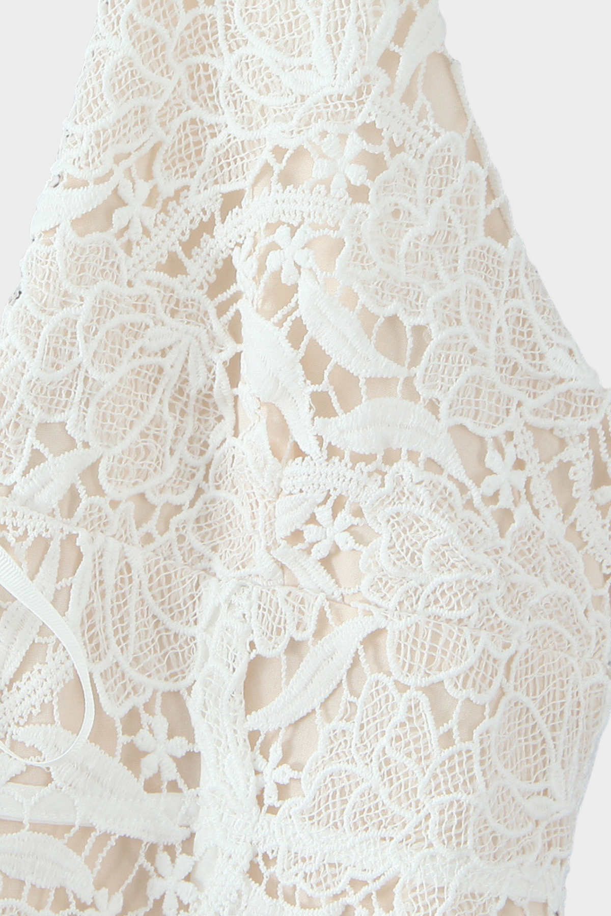 Nude lining underlay that enhances the delicate lace patterns while ensuring coverage.