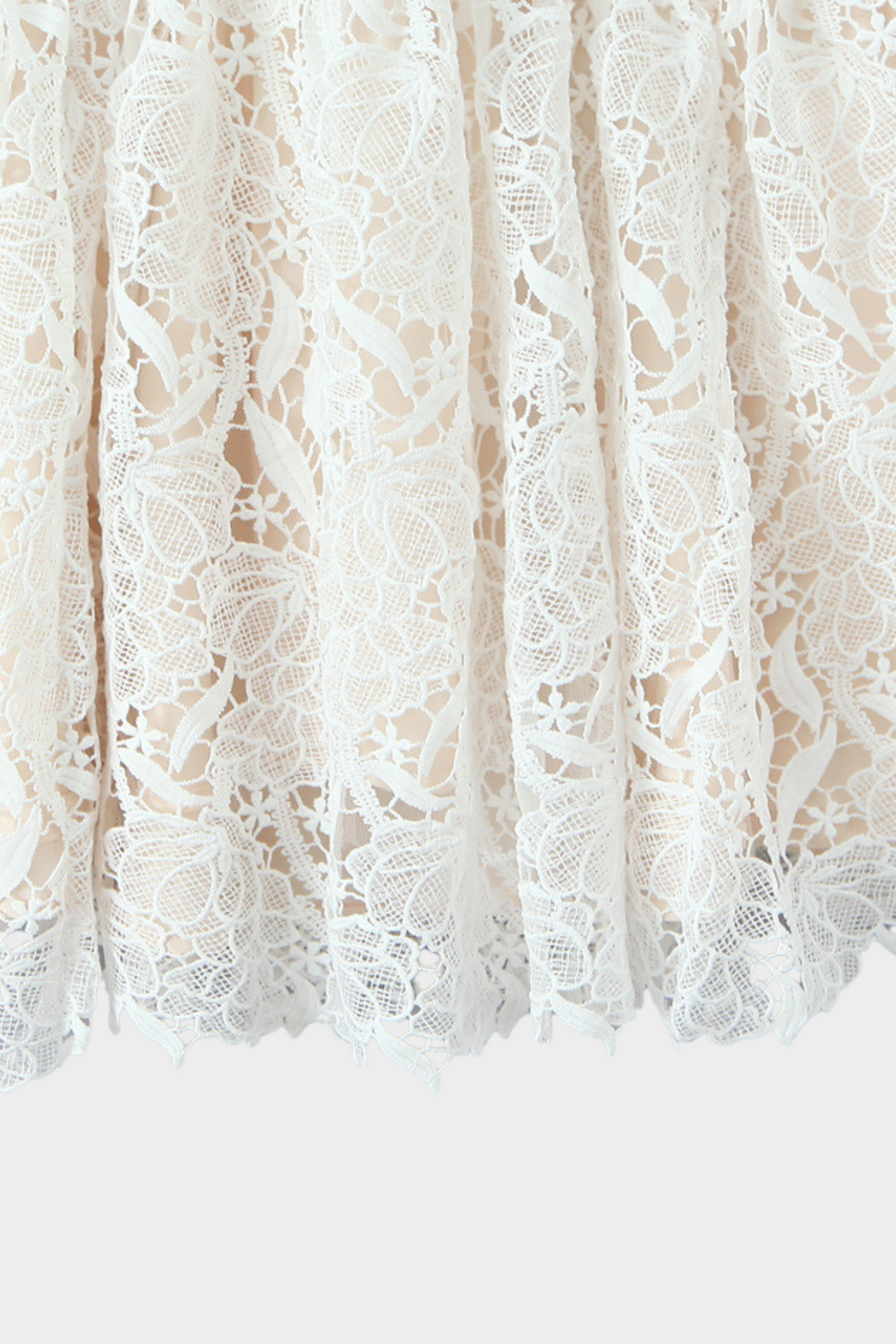 Flared A-line skirt with scalloped lace hem for graceful movement.