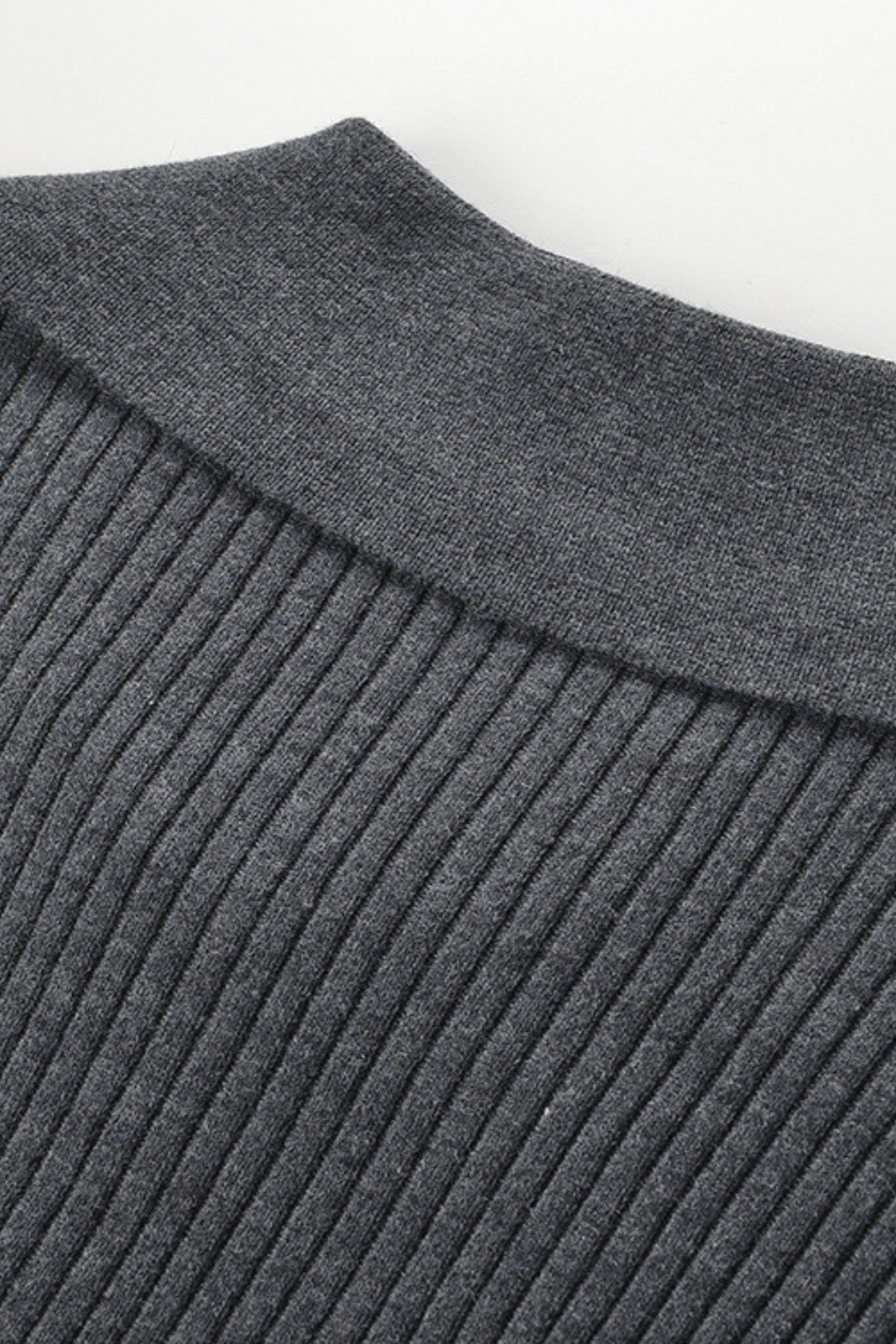 Cloud Grey Ribbed Wool Polo Sweater Top