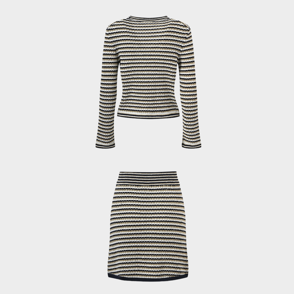 Chic Knit Houndstooth Long Sleeve Mini Skirt Set