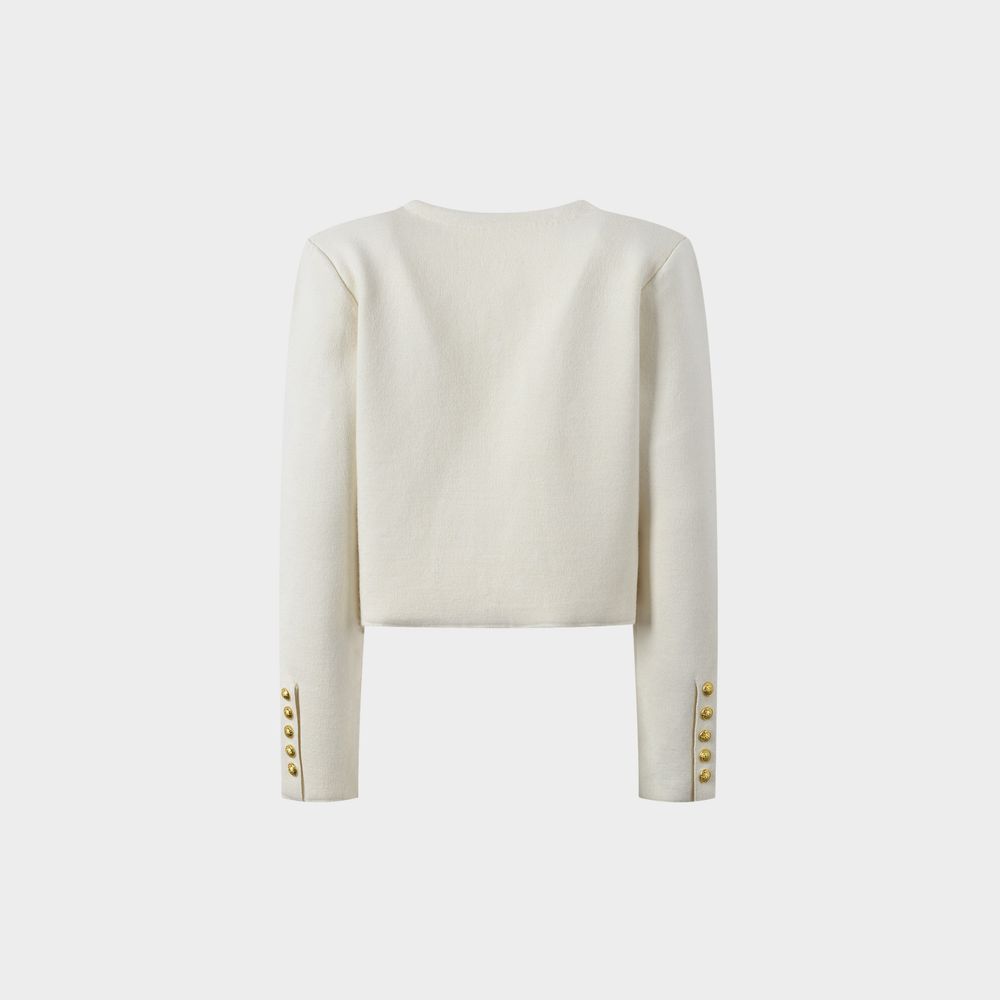 Pearl Luxe Trim Cropped Knit Cardigan Top
