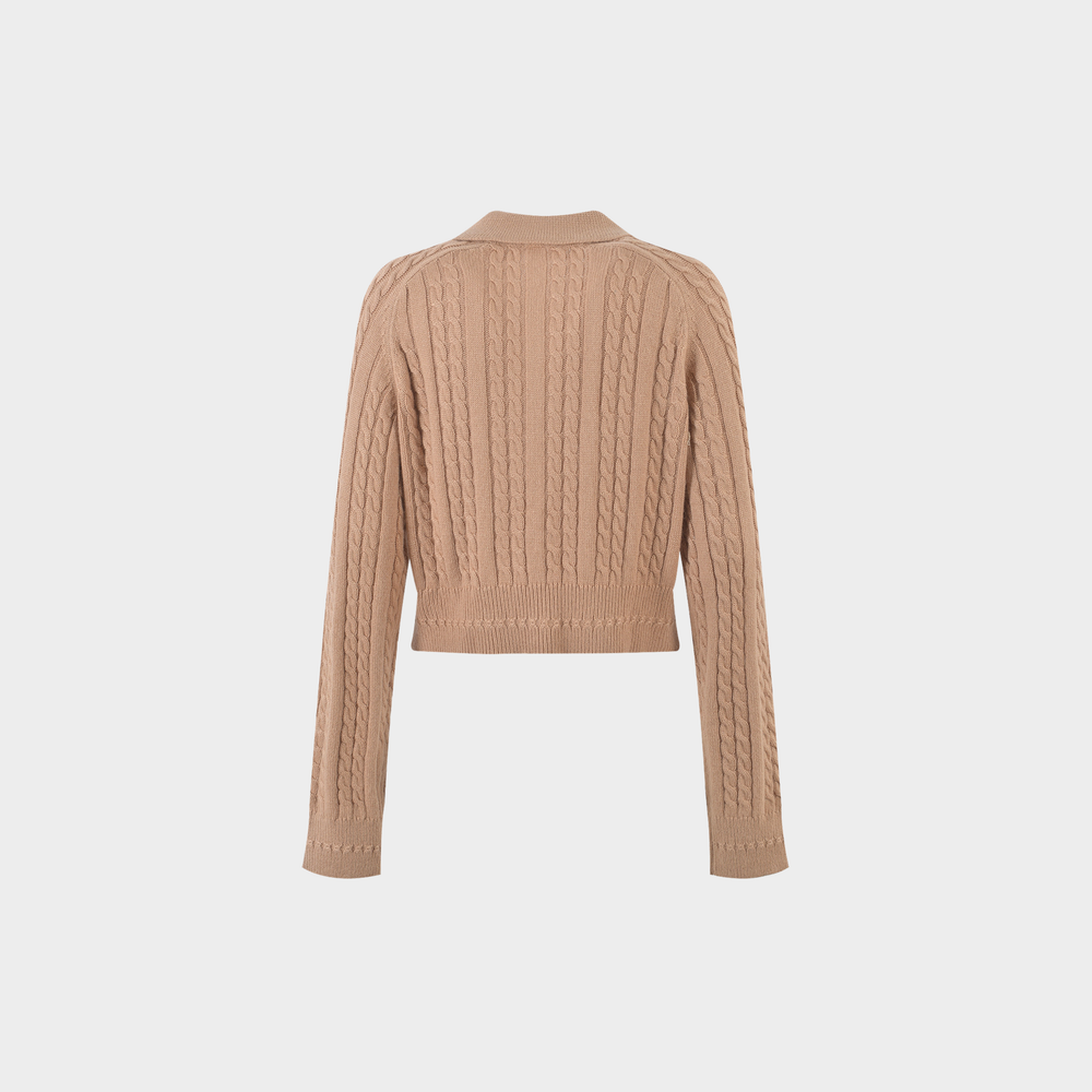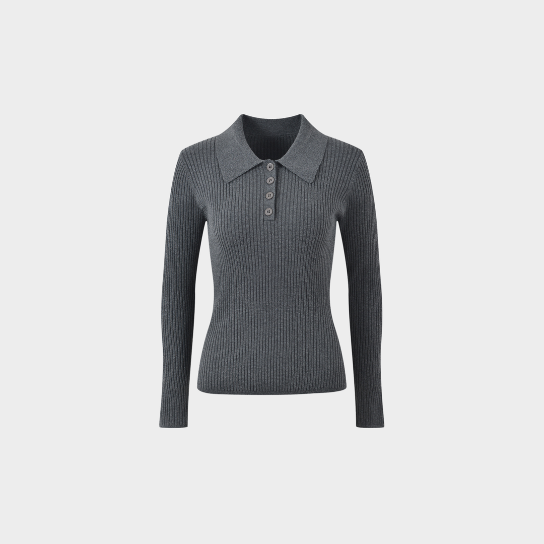 Grey Pearl Collar Pleated Cuff Wool Cardigan Top