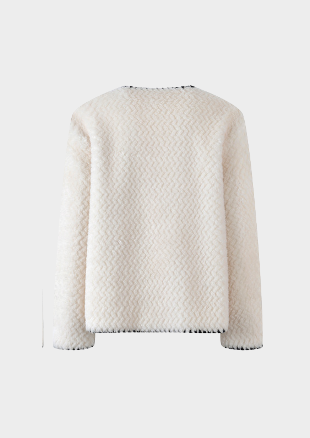 Ivory Fox Fur Trim Hooded Knit Jacket Top