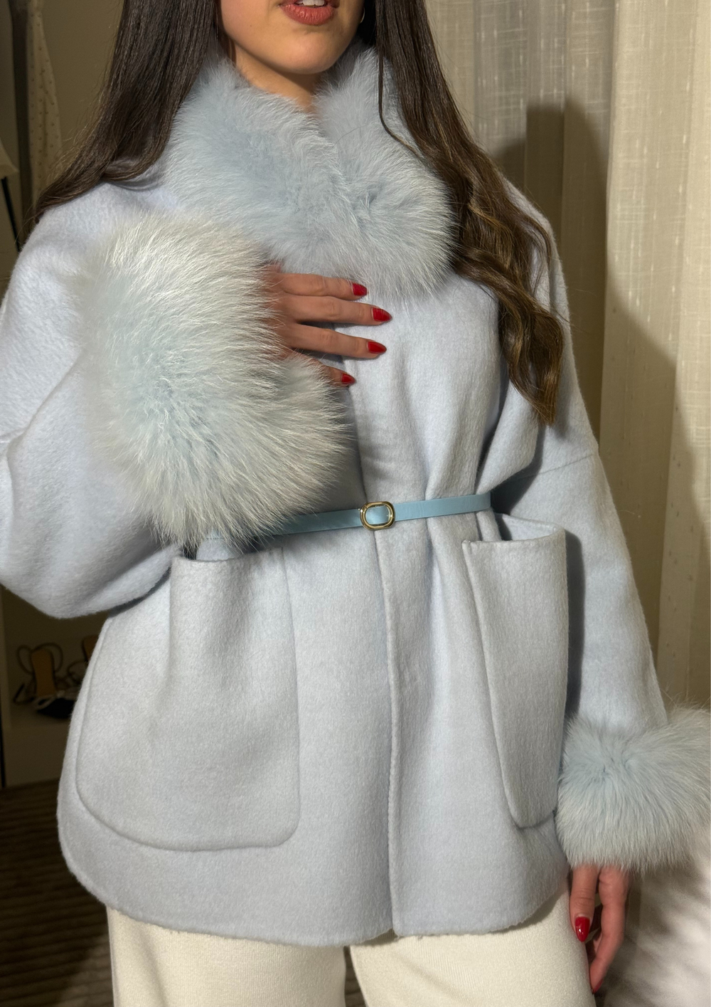 Luxe Double Faced Fox Fur Cuffs Wool Coat