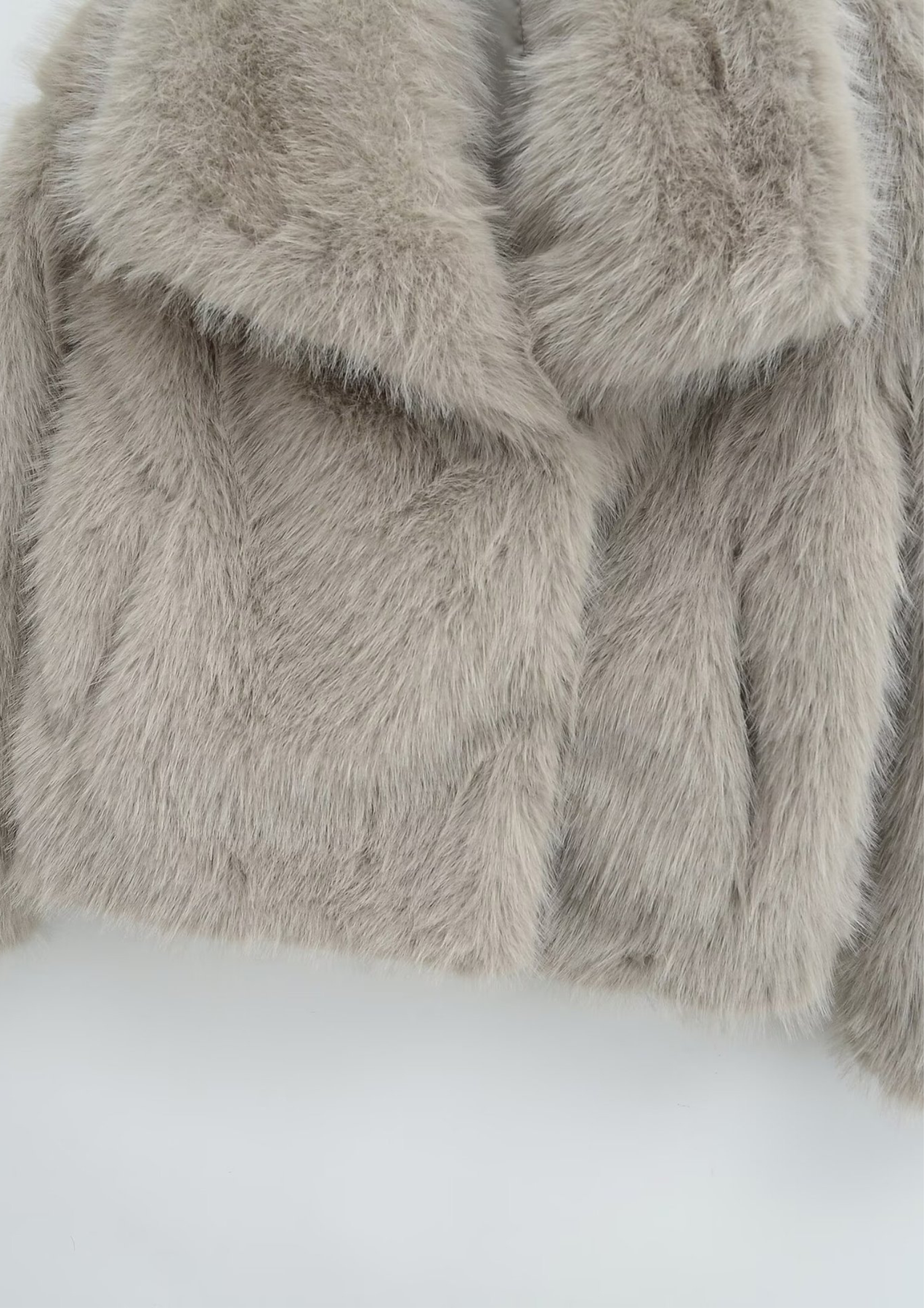 This chic faux fur jacket delivers luxurious texture and cozy warmth with a modern, cropped silhouette. Crafted from ultra-soft faux fur, it features a wide lapel collar that drapes elegantly for a refined yet statement-making look. Fully lined for comfort, this jacket is perfect for elevating both casual and evening outfits during colder seasons.