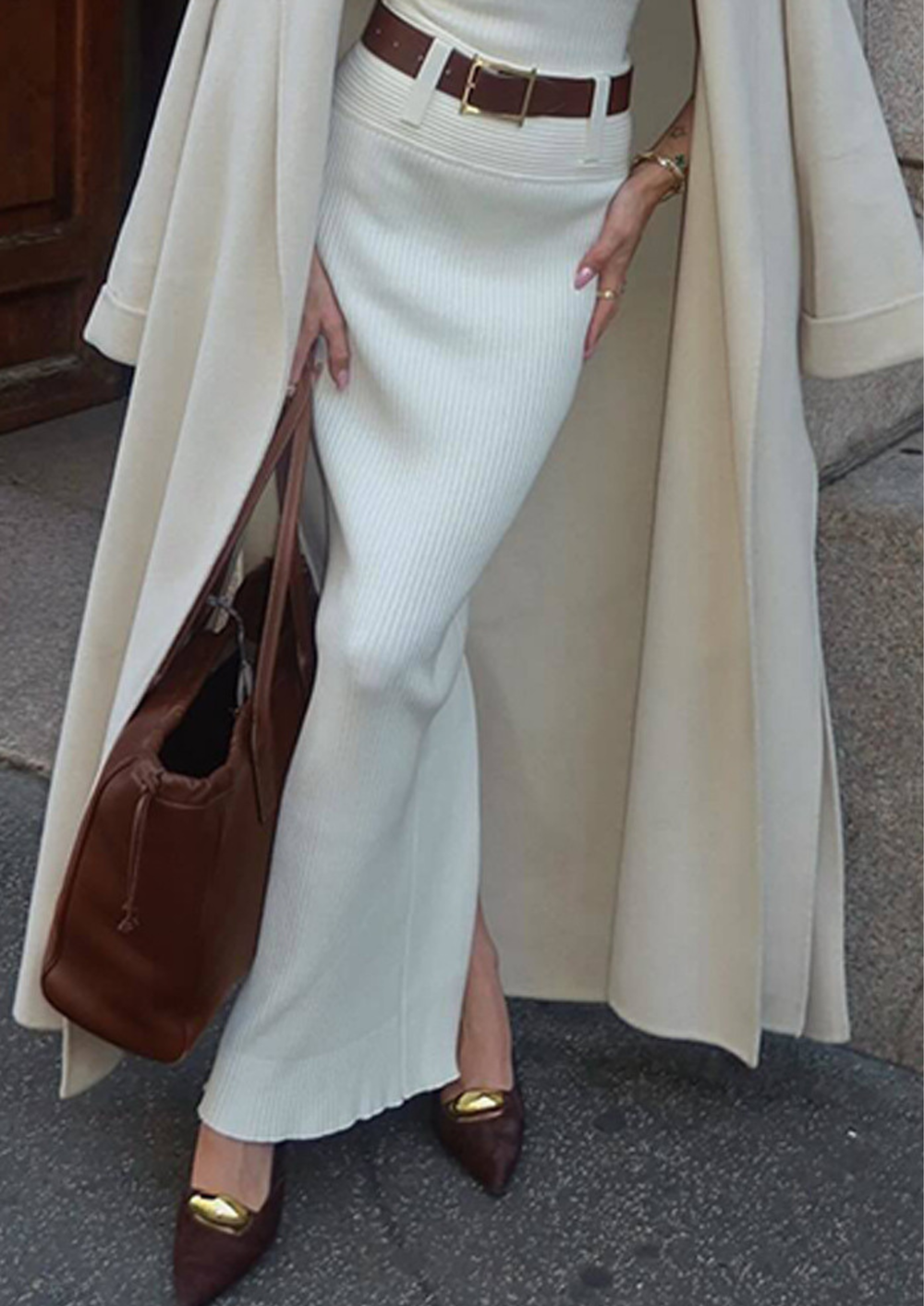 Fall Ribbed Knit Wool Maxi Skirt Set
