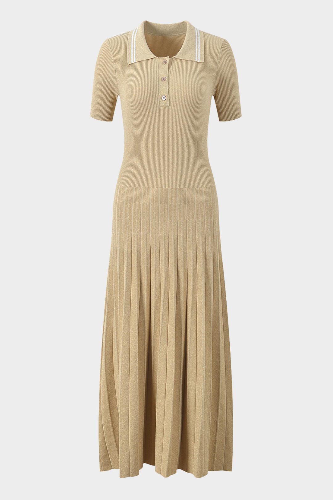 Lily – Golden Sand Polo Collar Pleated Viscose Knit Maxi Dress