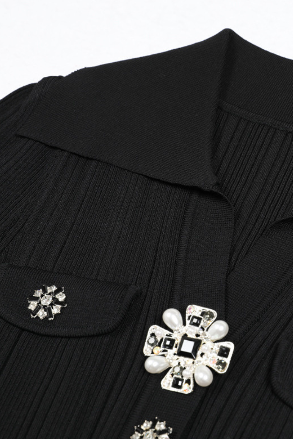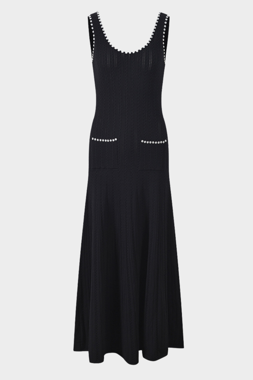 Noir Pearl Accent Pleated Knit Maxi Dress