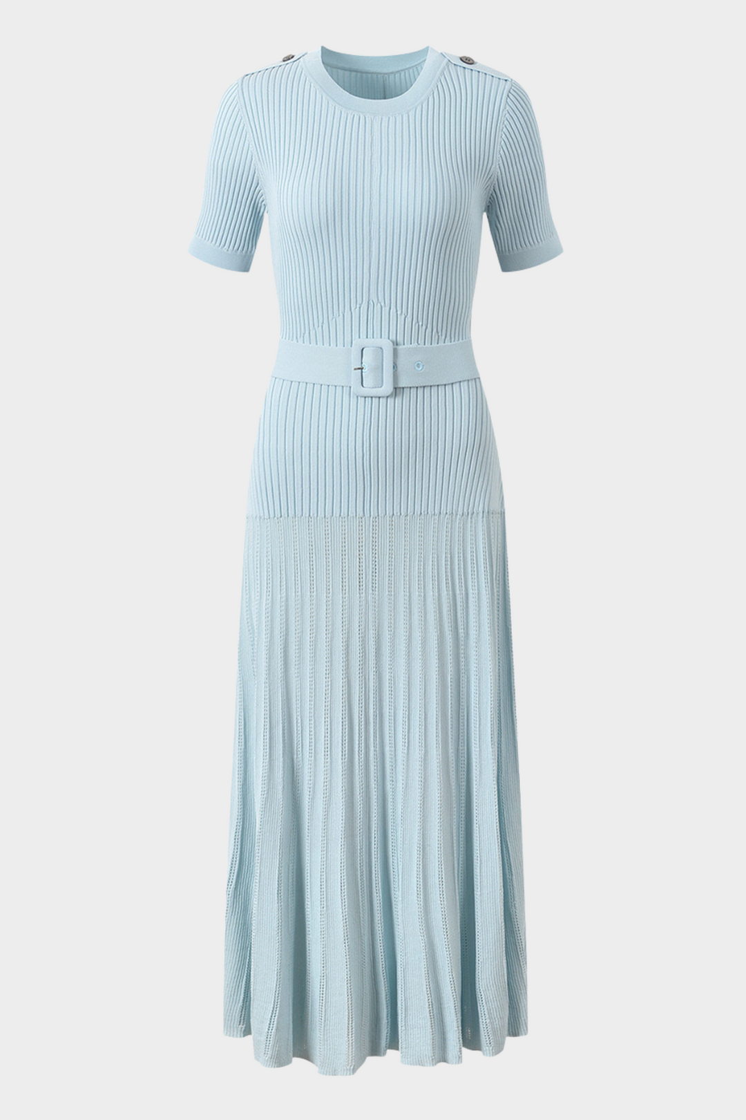Belted Ribbed Knit Viscose Pleated Elegance Maxi Dress