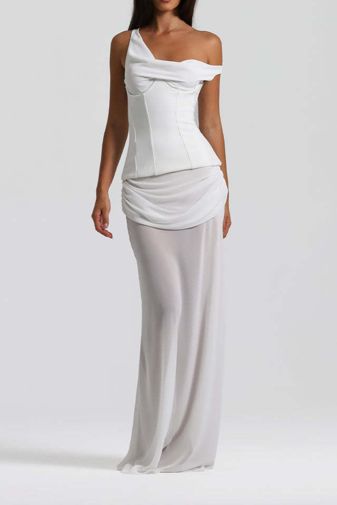 Gia Mesh Drape One-Shoulder Maxi Dress