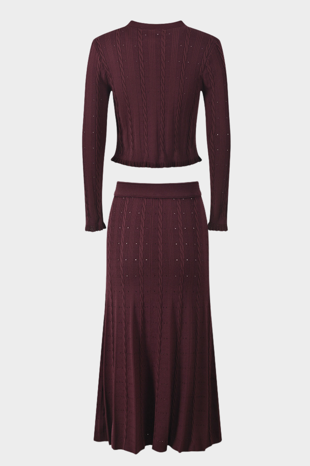 Pearl Luxe Buttoned Textured Knit Maxi Skirt Set