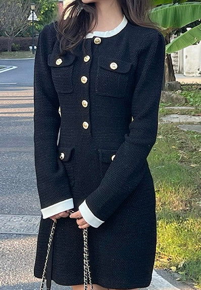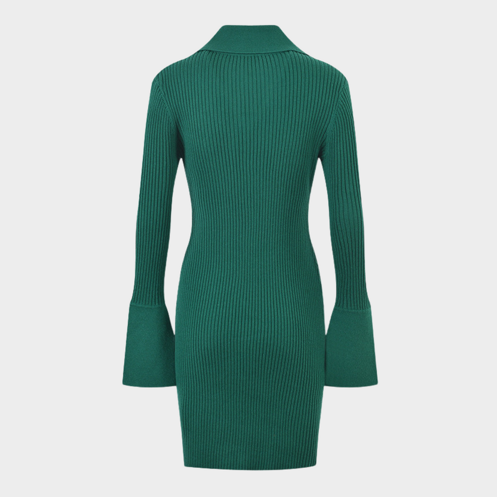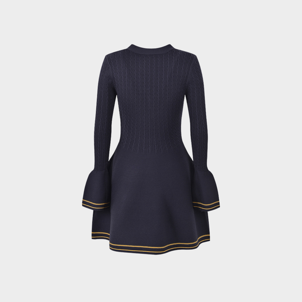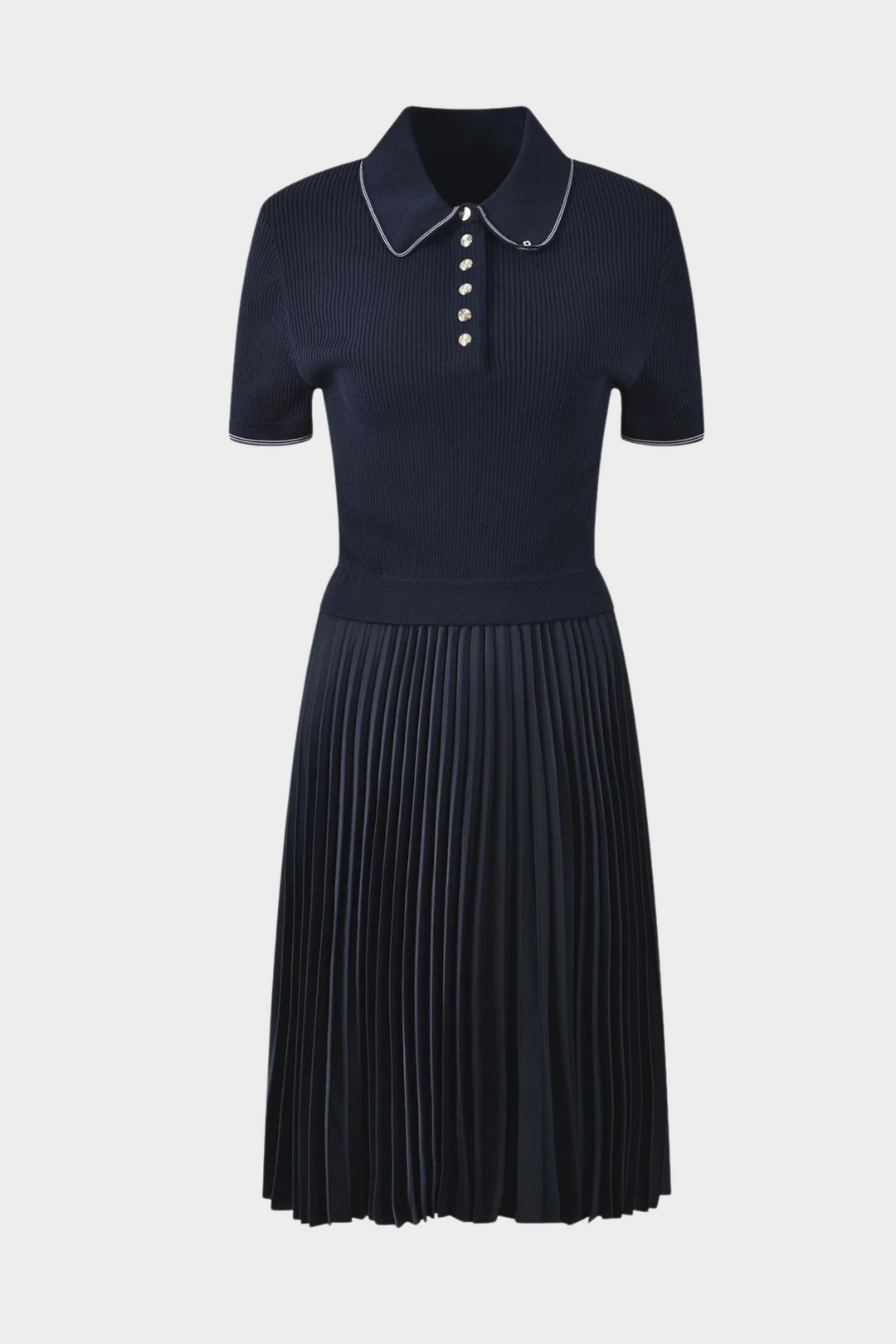 Lily – Navy Luxe Polo Collar Pleated Knit Mini Dress
