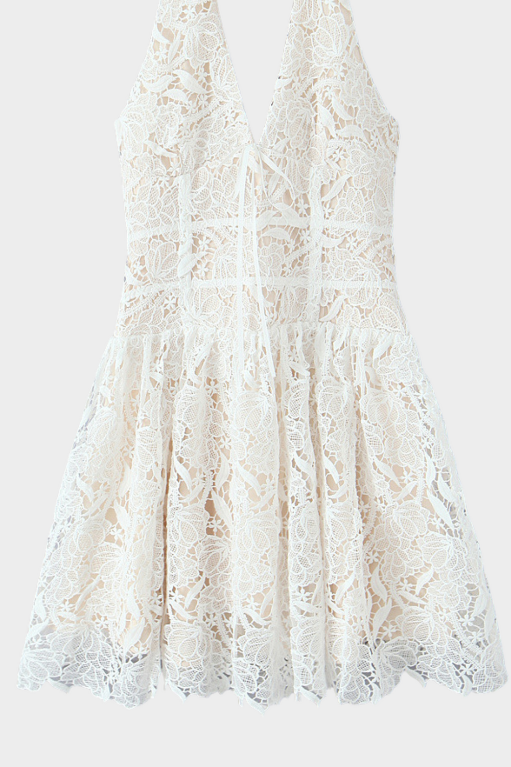 Ivory Apricot Bloom Lace Halter Cute Mini Dress