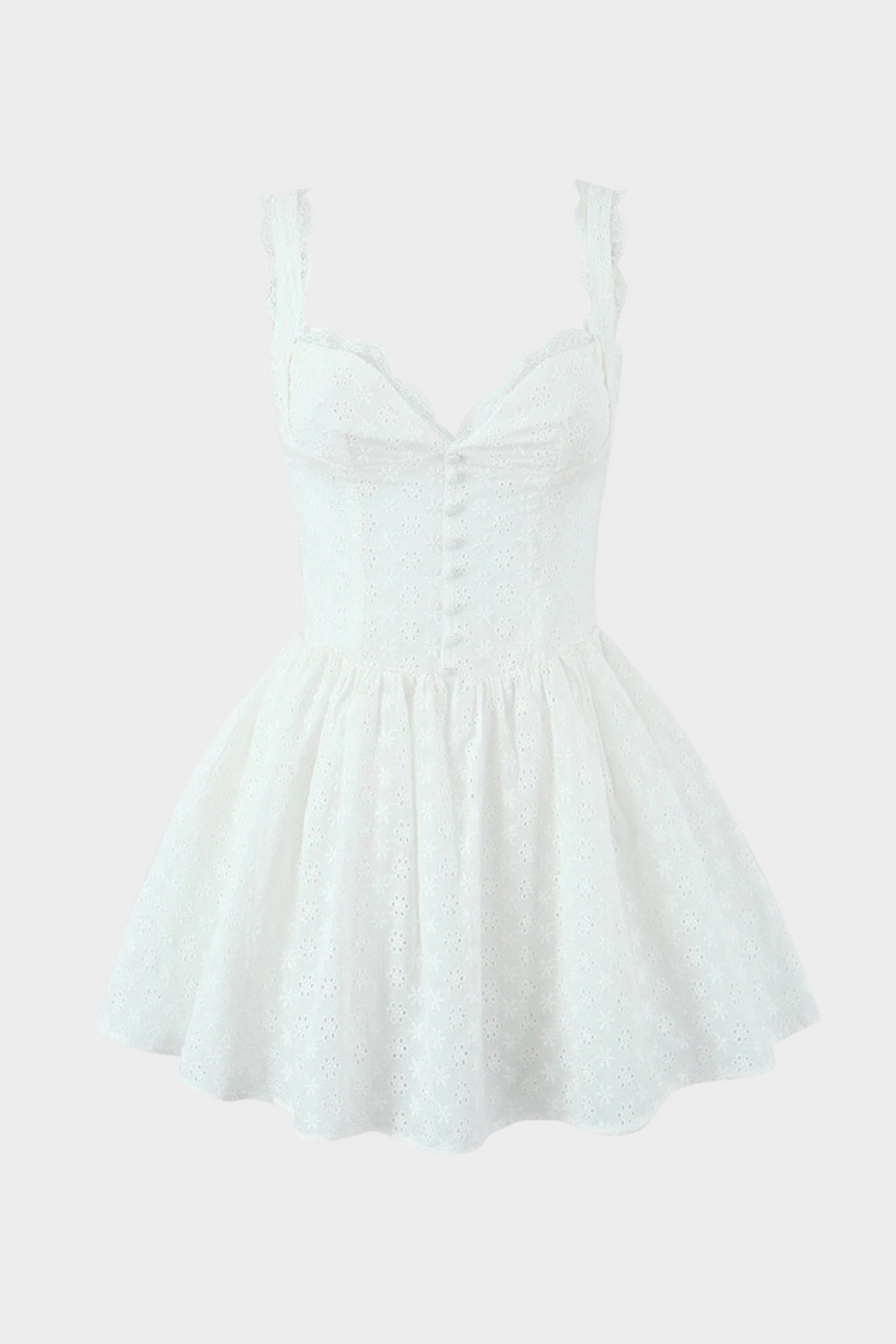 Lily White Embroidered Lace Straps Cute Mini Dress