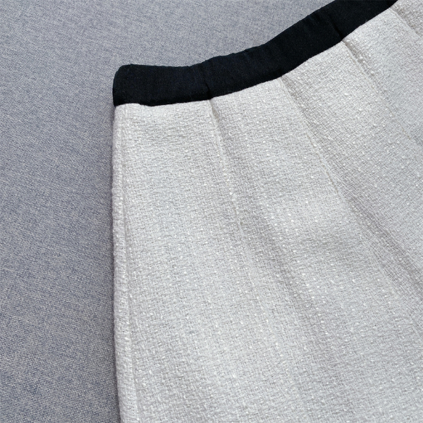 An elegant tweed skirt designed with soft pleats and subtle shimmer, combining refined texture with graceful movement for a polished feminine look.