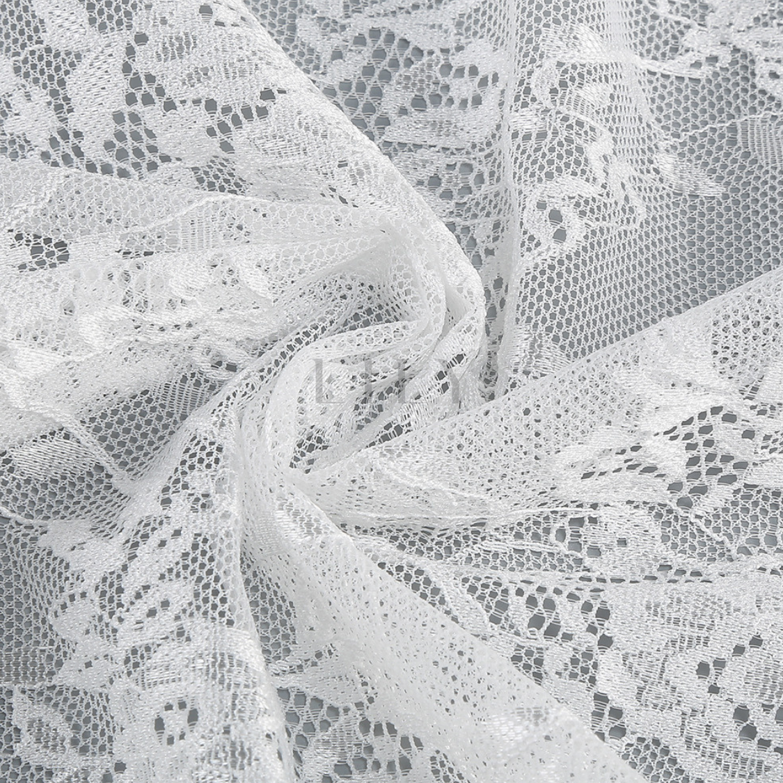 Sheer lace overlay with intricate floral pattern