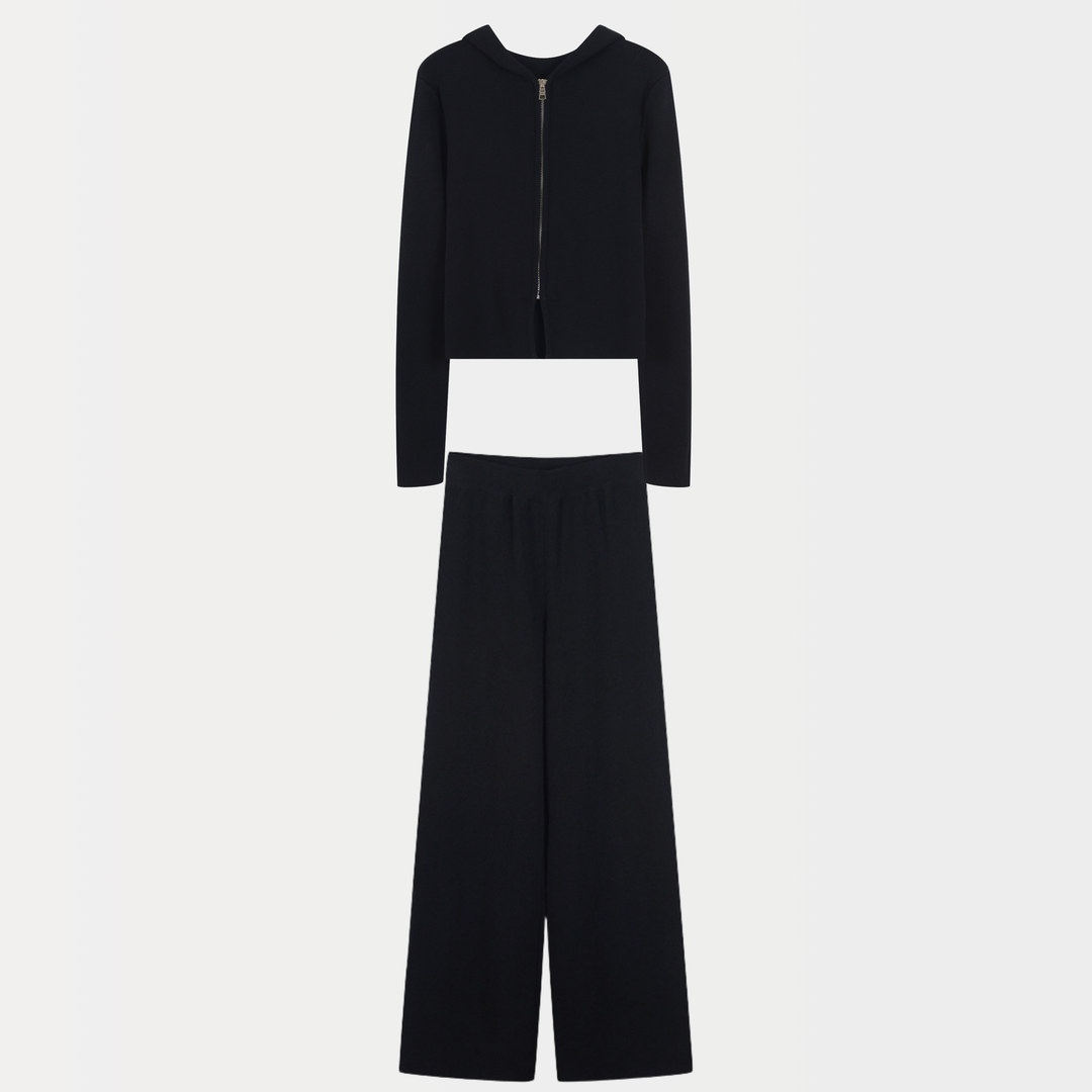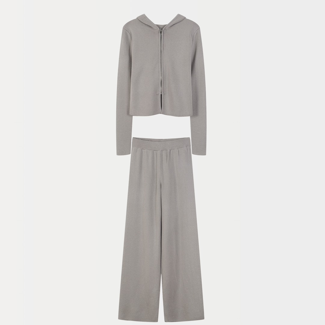 Winter Cloud Cashmere Zip Wide Leg Knit Set