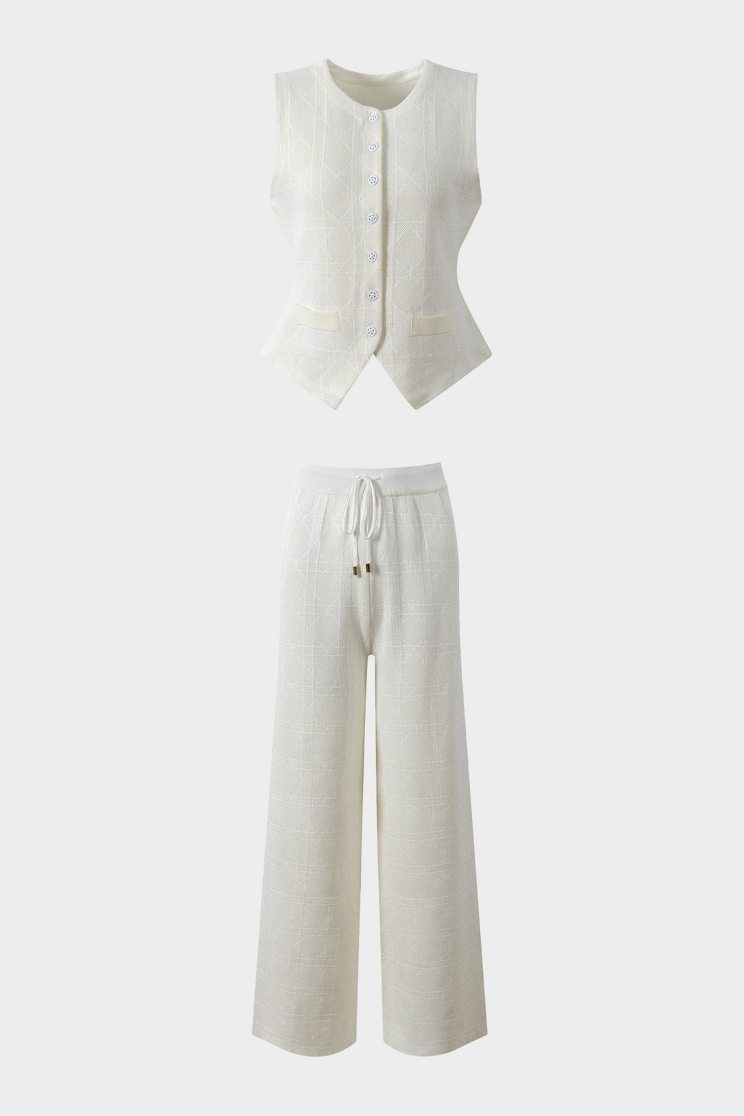 Viscose Knit Sleeveless Vest LaceUp Wide Leg Set