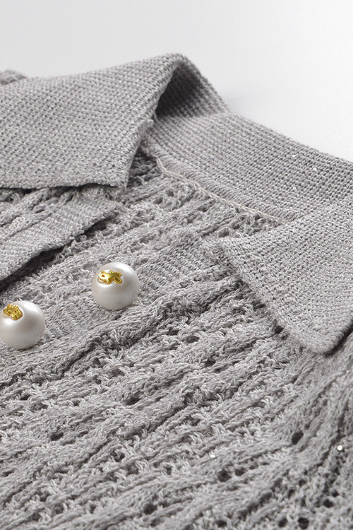 Delicate lace-trimmed short sleeves add a feminine and romantic detail