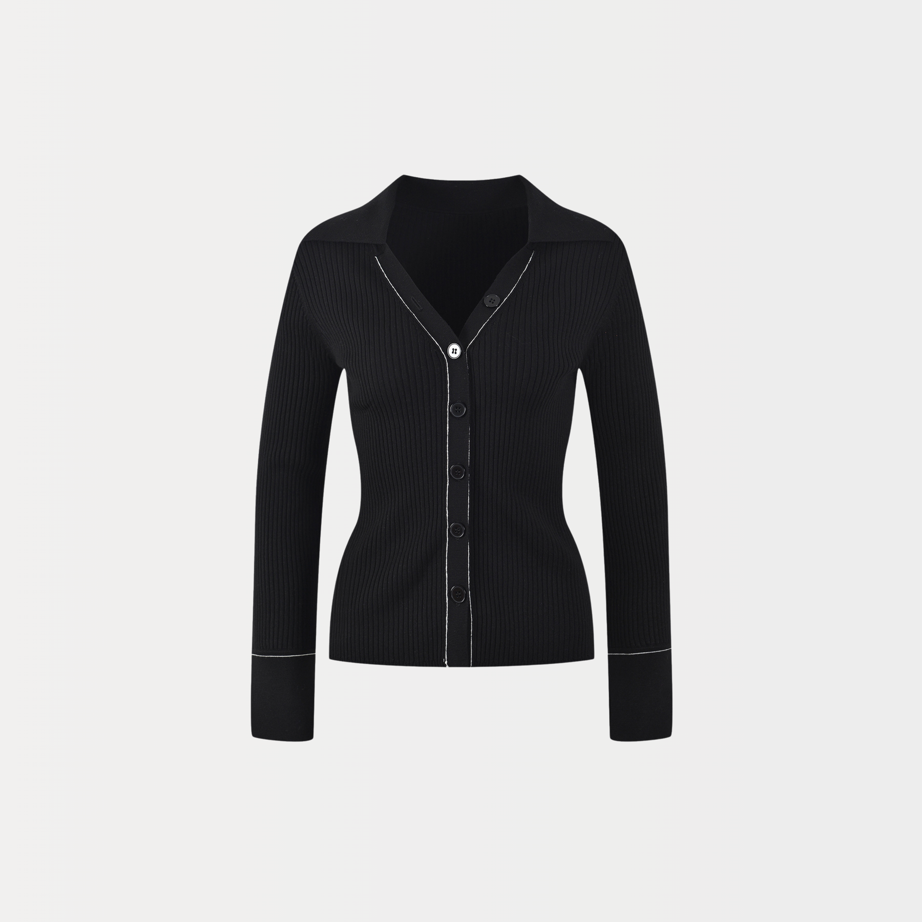 This cardigan combines simplicity and elegance, offering a versatile piece for both professional and casual settings.