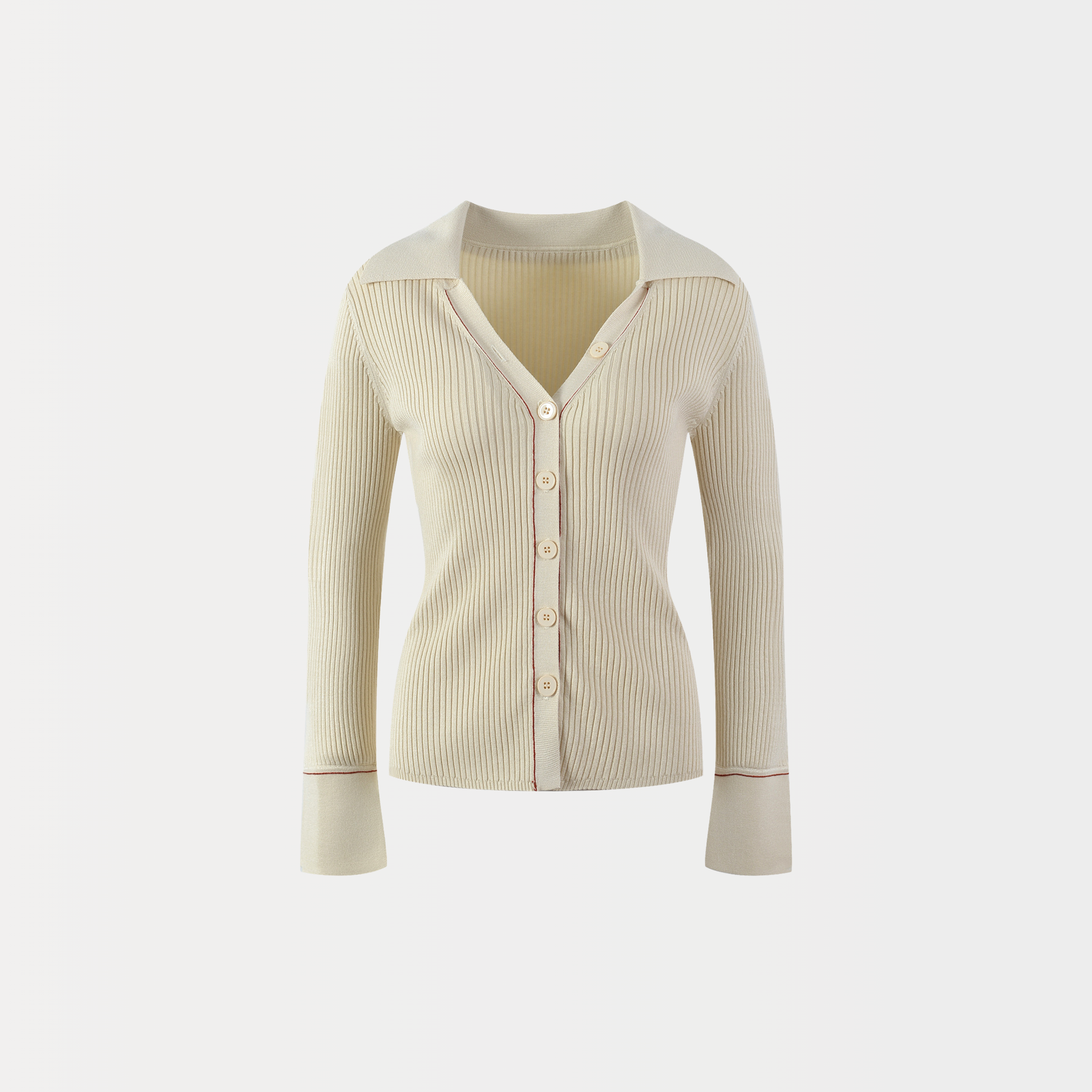 • Design Features: Buttoned V-neck, long sleeves with accented cuffs.