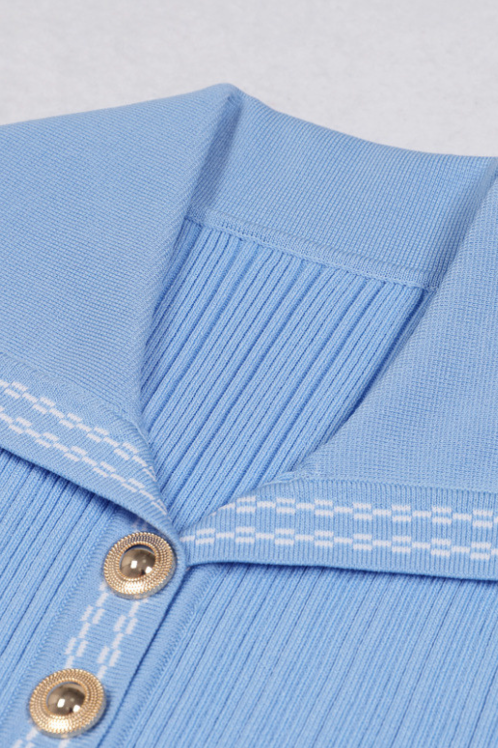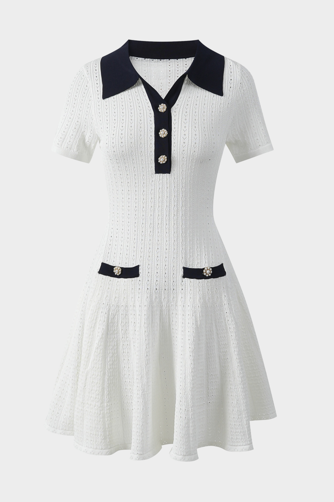 Lily – Navy Luxe Polo Collar Pleated Knit Mini Dress