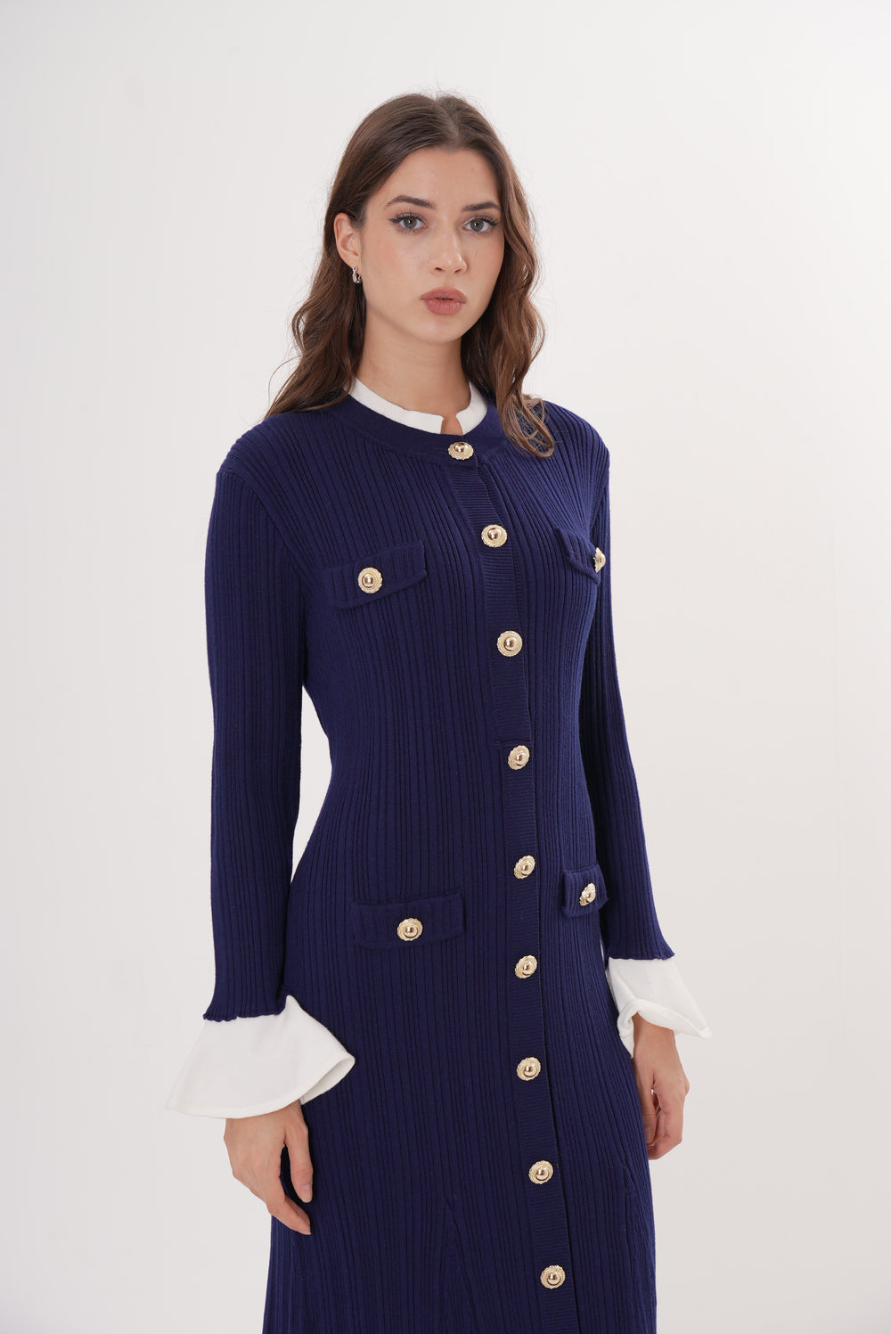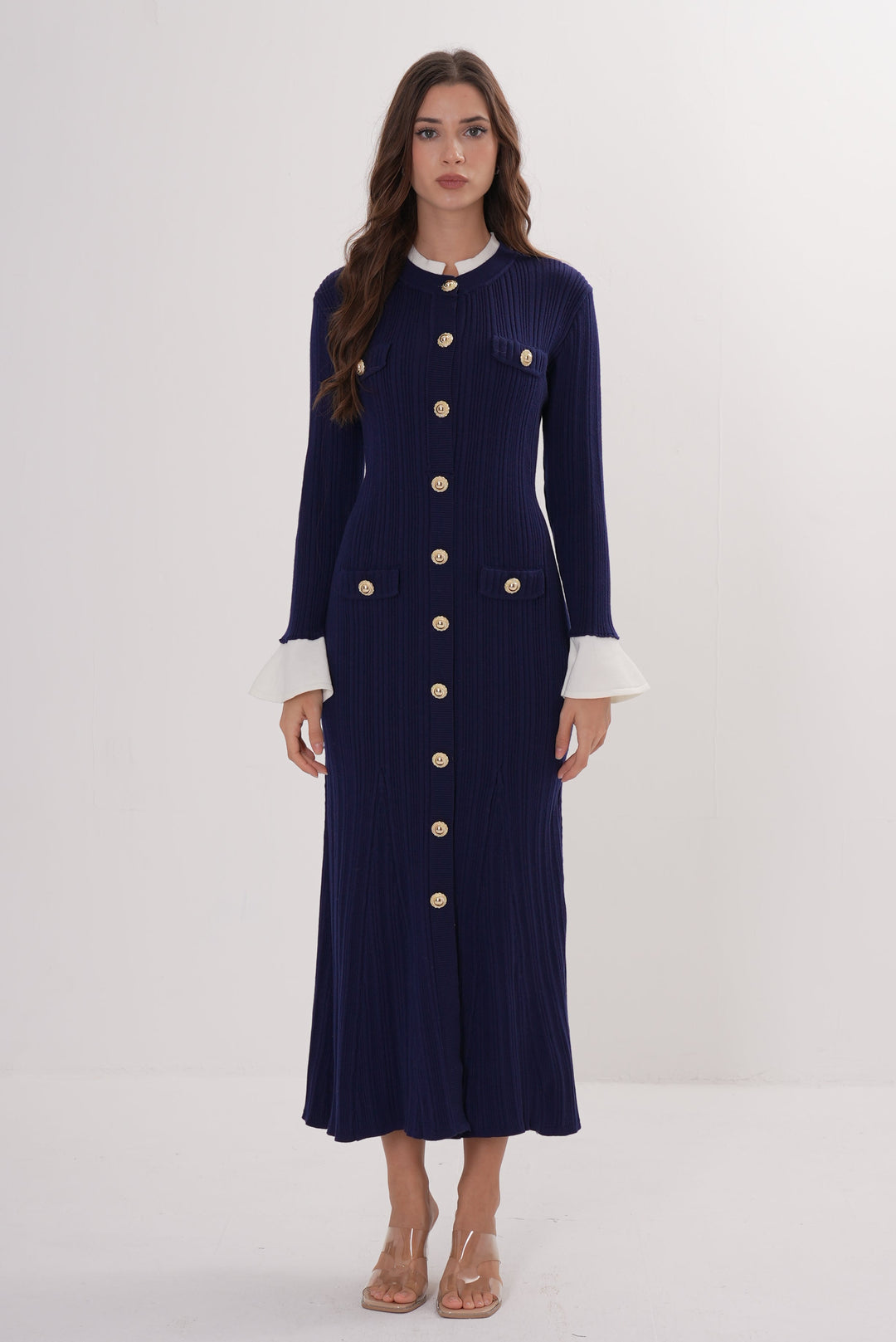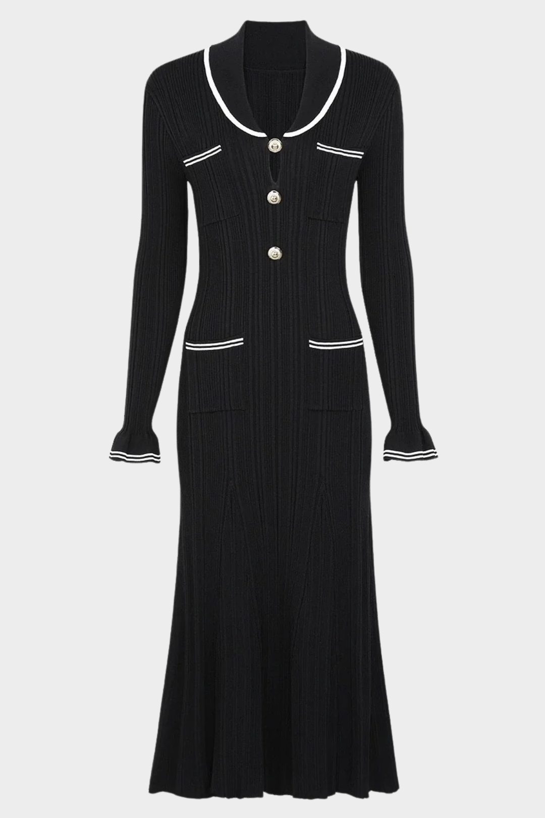 Clara Contrast Trim Knit Flare Cuff Maxi Dress