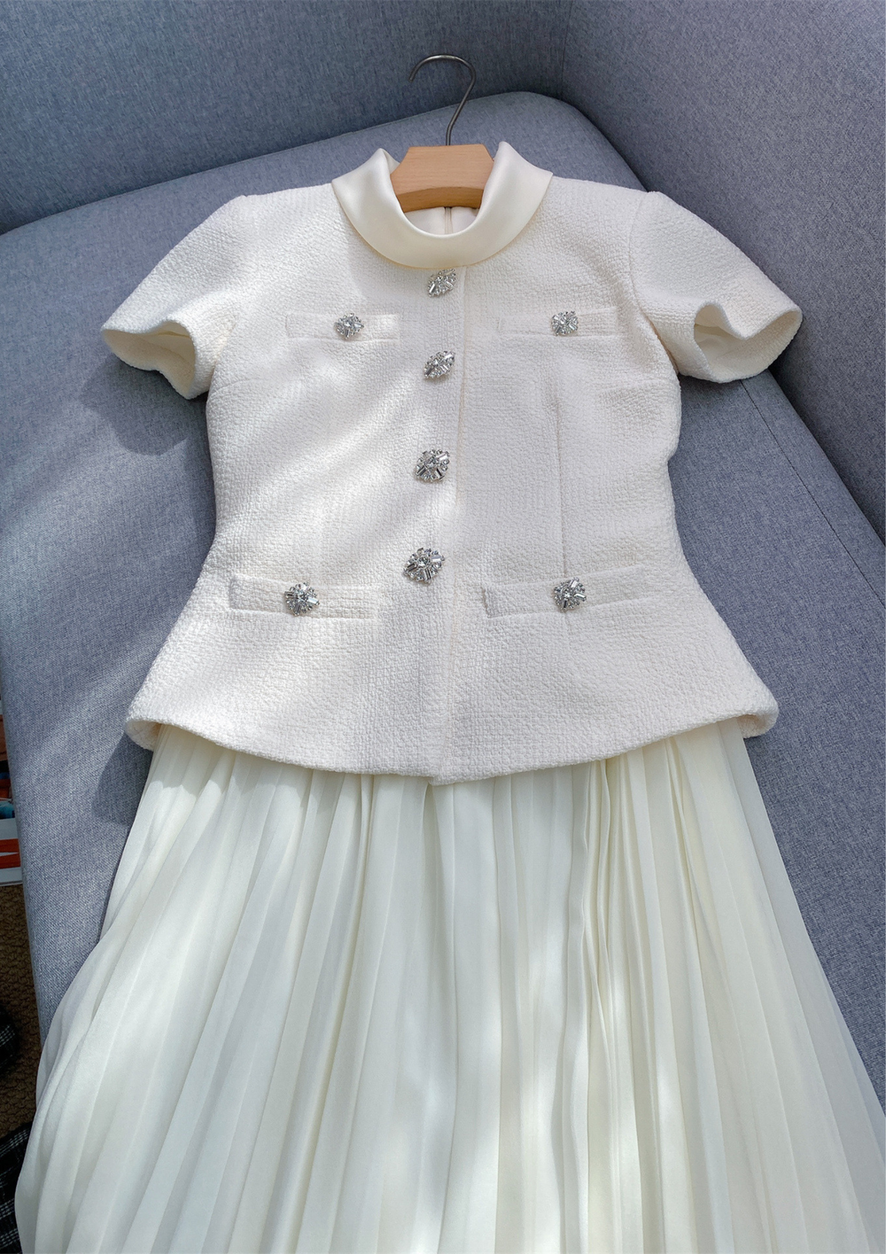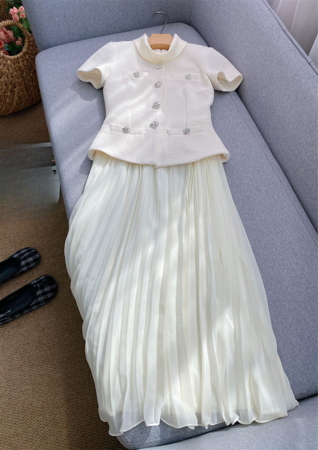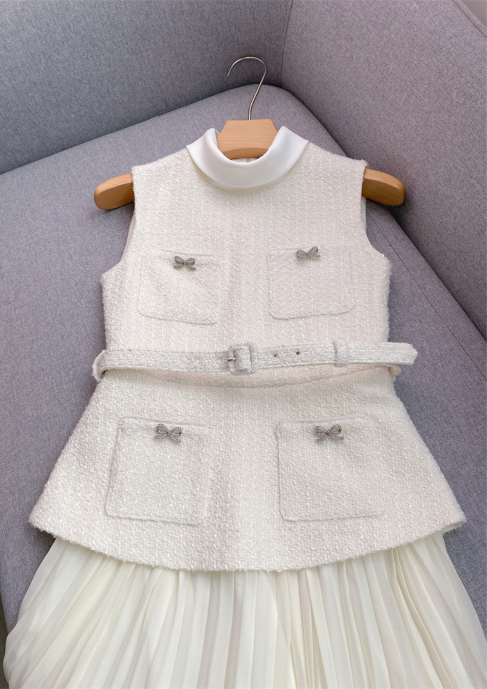 Crystal Bow Elegance Tweed Belted Pleated Maxi Dress