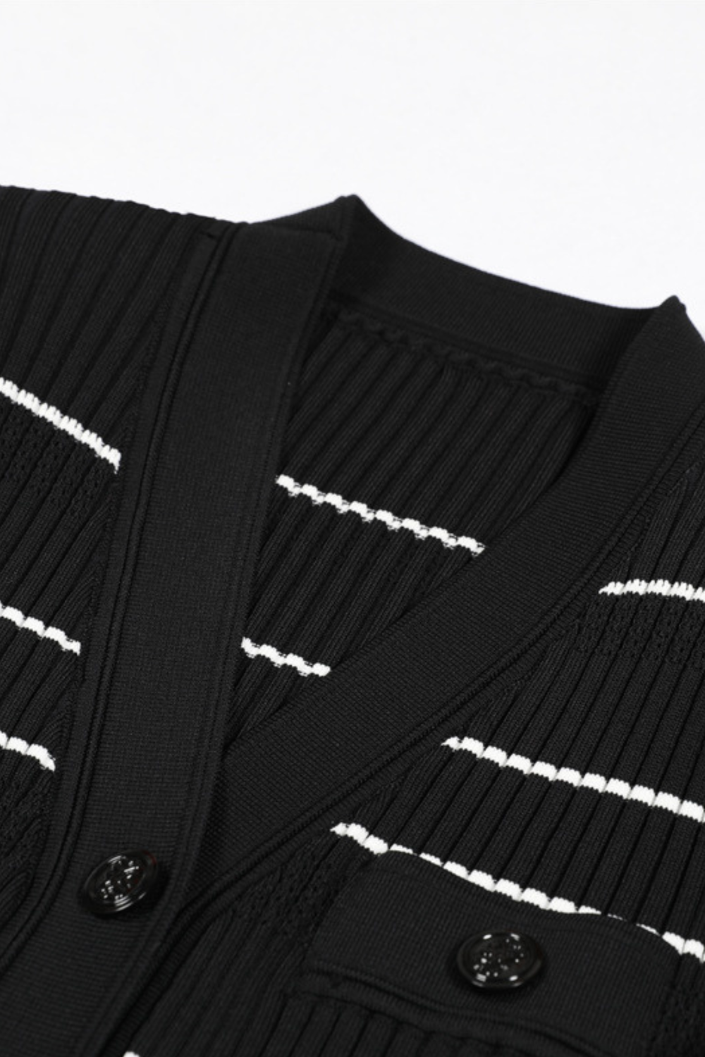 Dalia Striped Flare Knit V Neck Maxi Dress