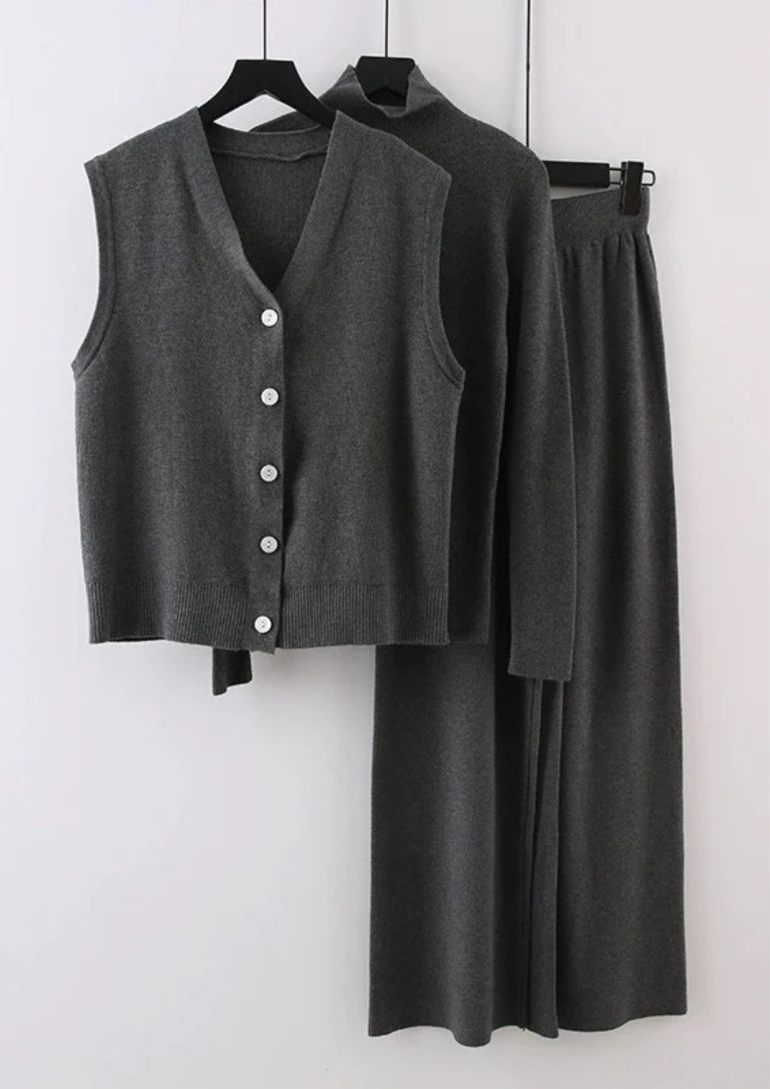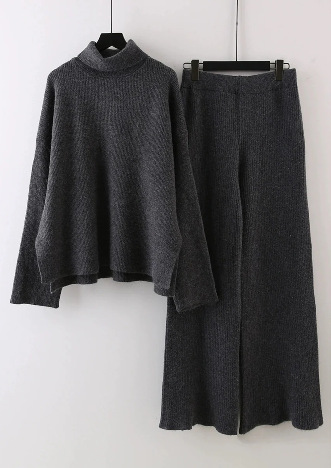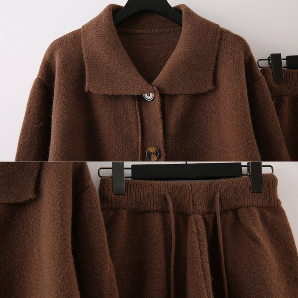 Comfy Ribbed Lapel Wide Leg Knit Set