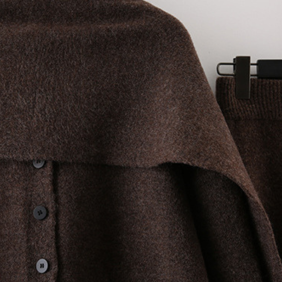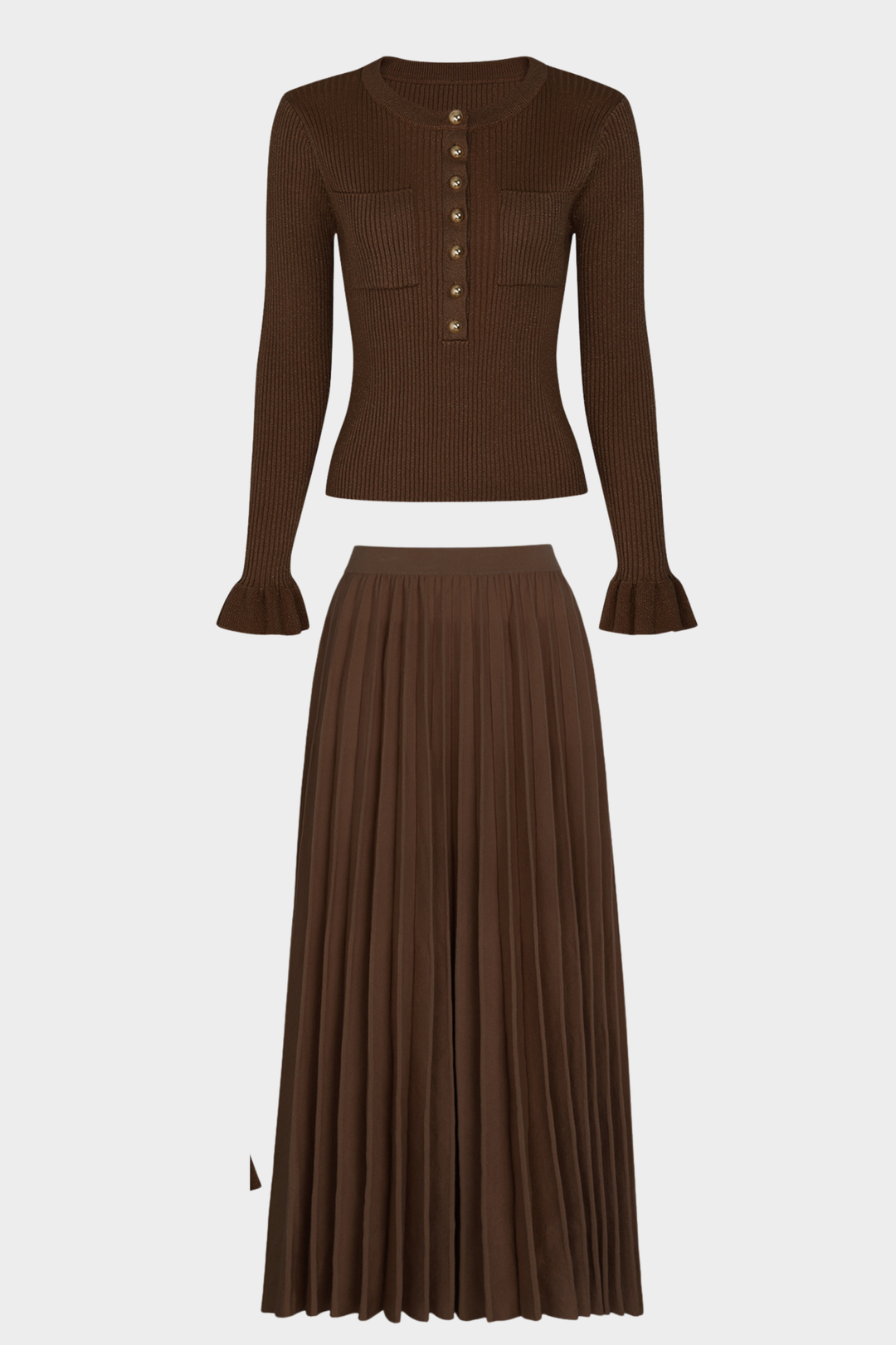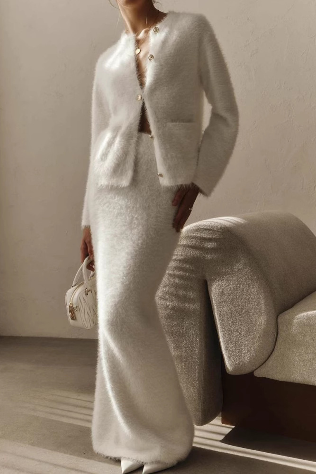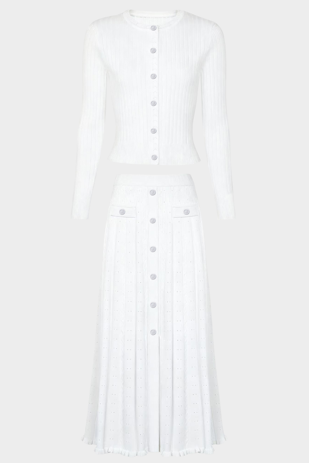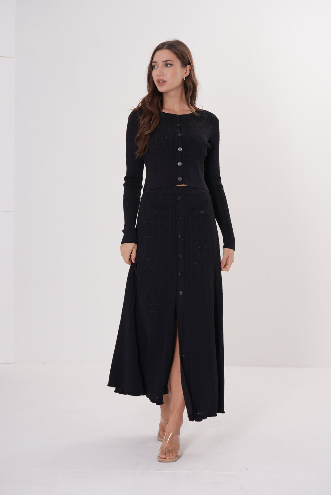 Pearl Luxe Buttoned Textured Knit Maxi Skirt Set