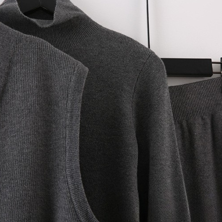 Fall Ribbed Knit Wool Maxi Skirt Set