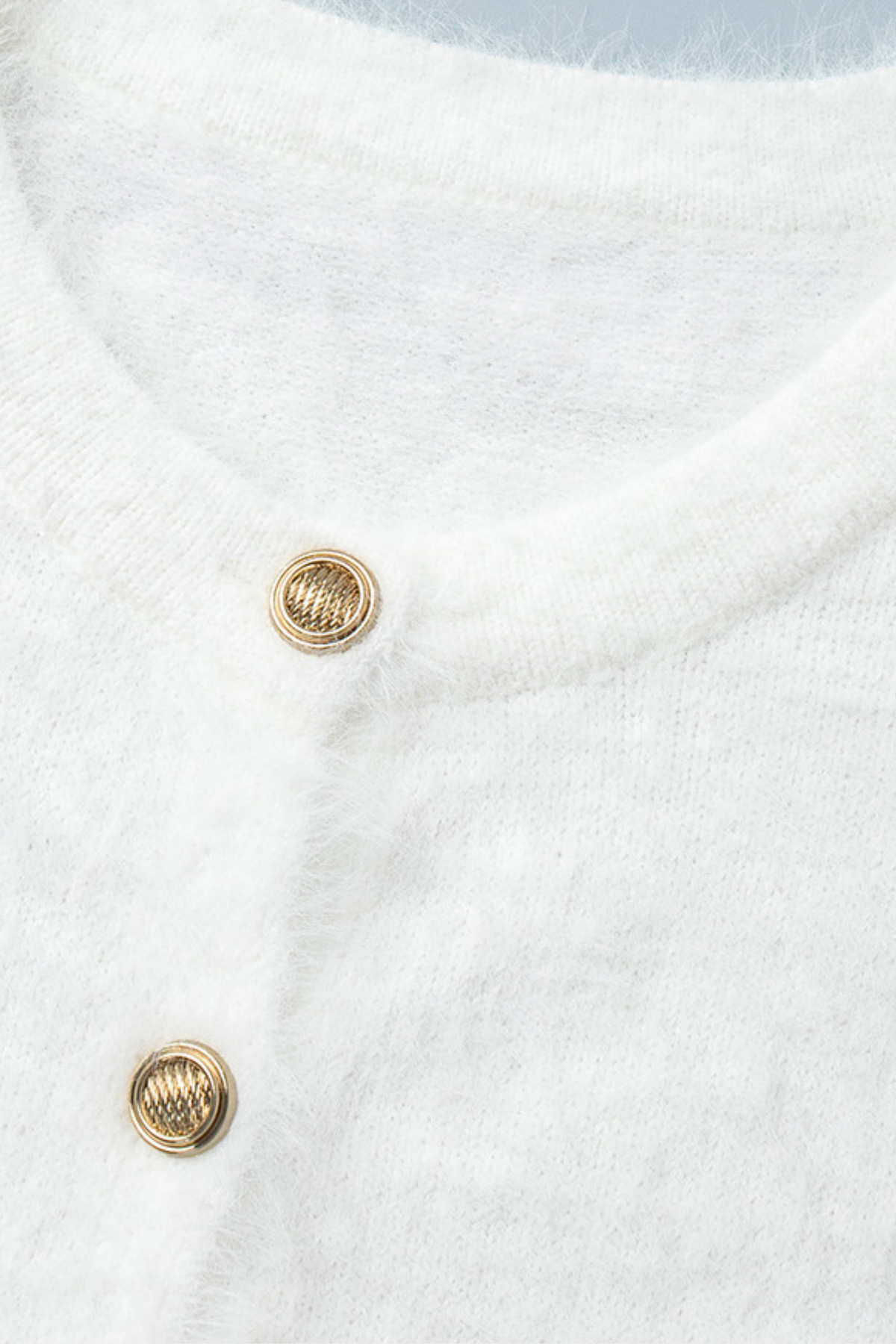 • Elegant button-front cardigan with gold-tone detailing for a refined finish