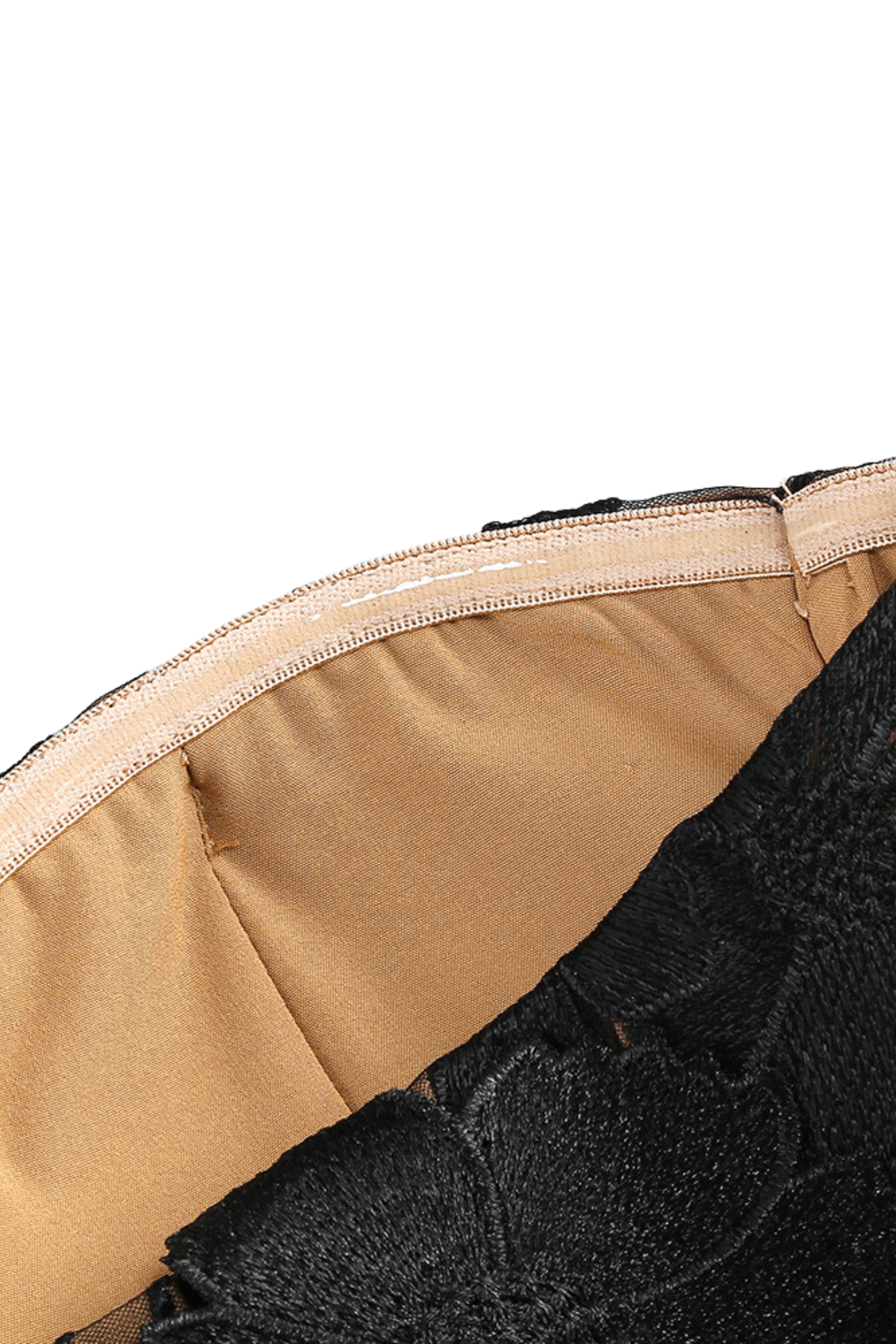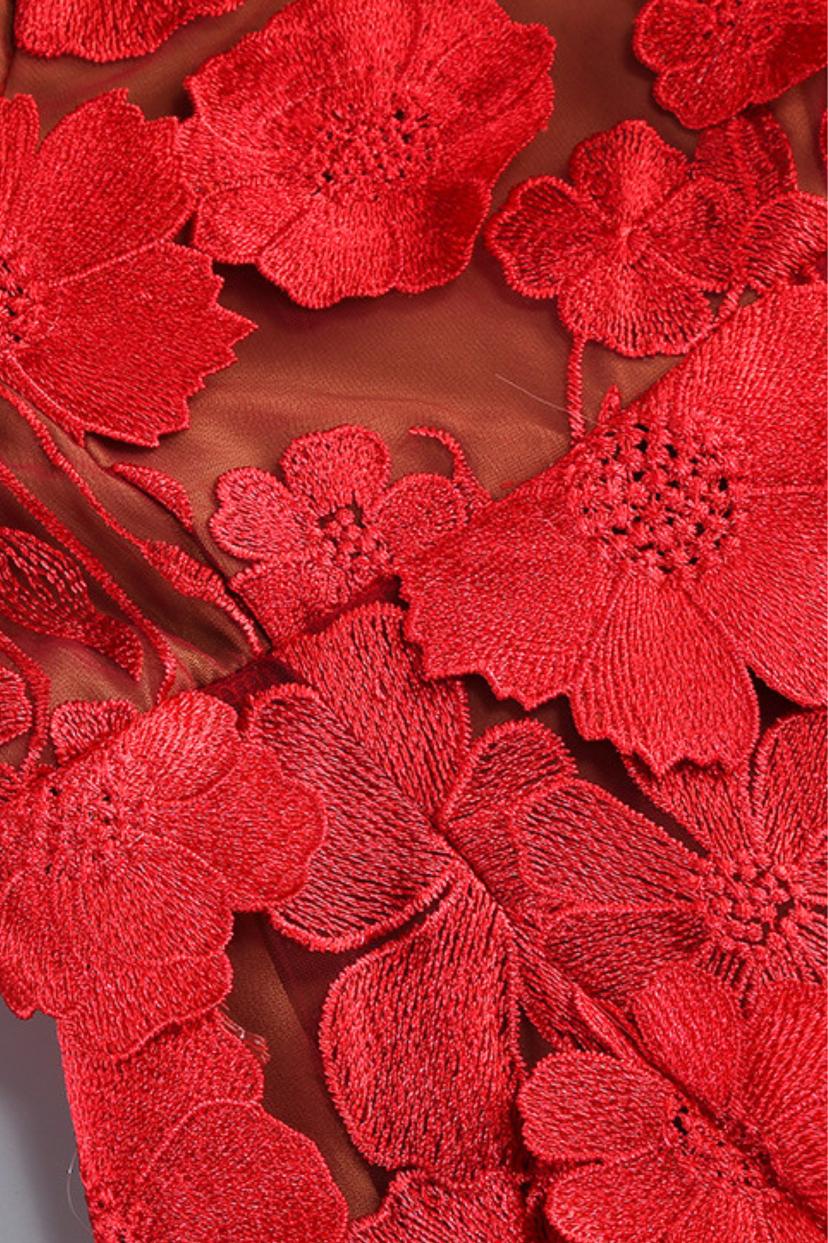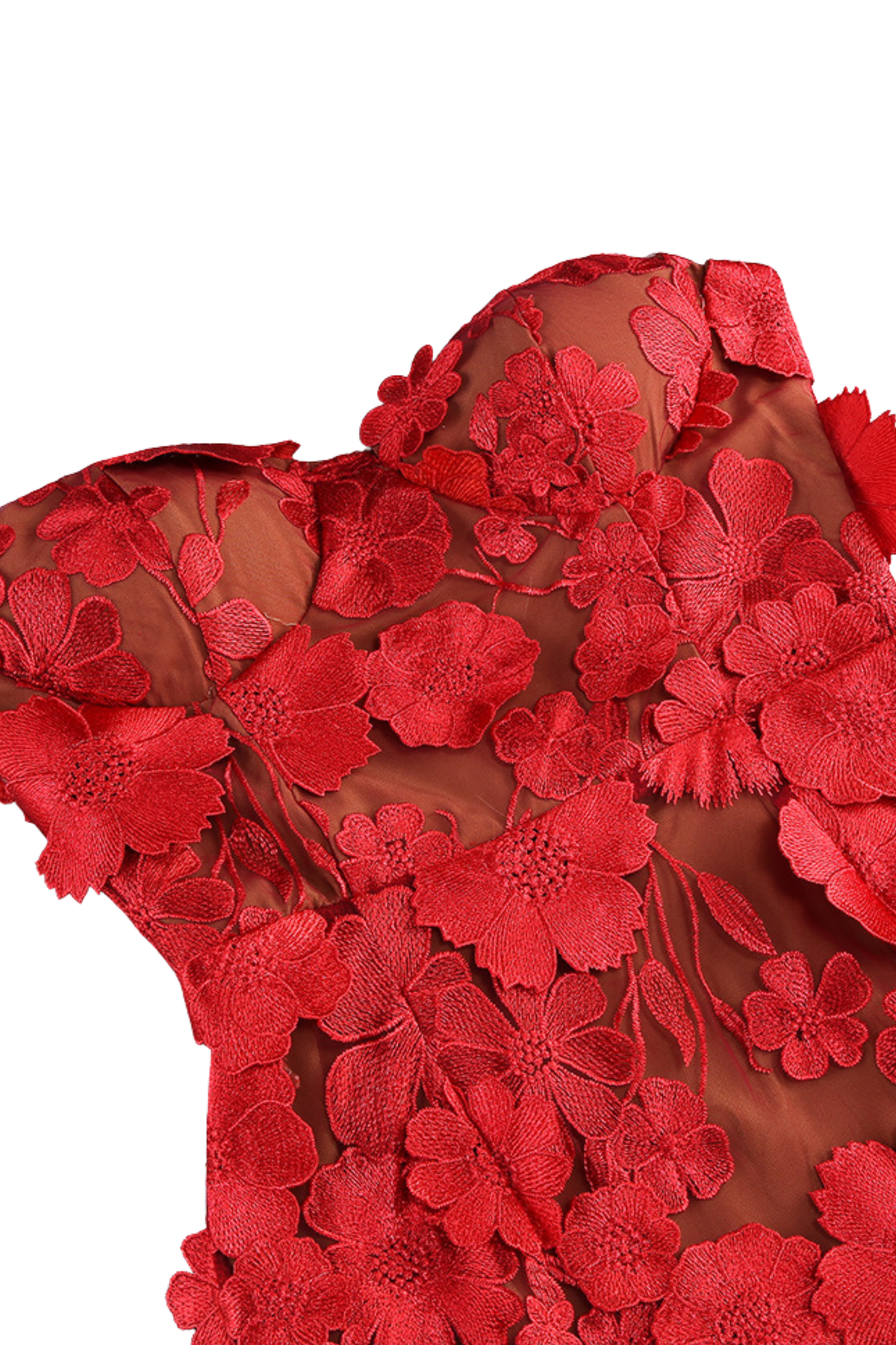 • Nude mesh base with intricate black 3D floral appliqué embroidery